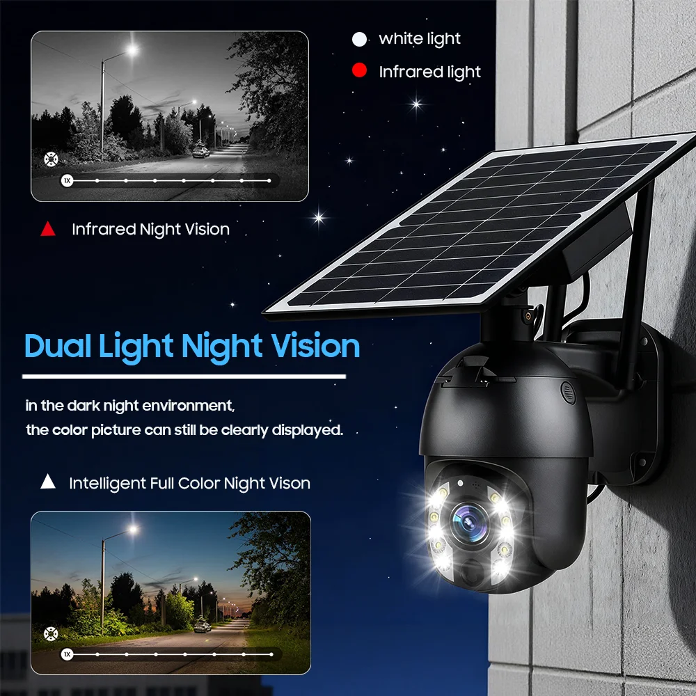 กล้องวงจรปิดพลังงานแสงอาทิตย์สำหรับภายนอกบ้าน รองรับซิม 4G ซูมออปติคอล 50 เท่า ความละเอียด 4K พร้อม Wifi ป้องกันความปลอดภัย ตรวจจับความเคลื่อนไหวของมนุษย์ กล้องวงจรปิด IP