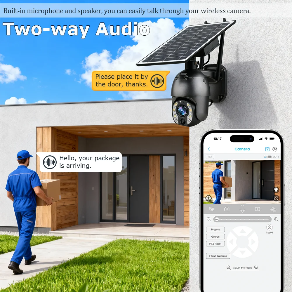 กล้อง IP รุ่นนี้มาพร้อมไมโครโฟนและลำโพงในตัวที่ได้รับการปรับปรุง คุณสามารถใช้เพื่อเตือนผู้บุกรุก ตรวจสอบผู้มาเยือนที่หน้าประตู หรือสื่อสารโดยตรงกับครอบครัวหรือเพื่อนของคุณได้