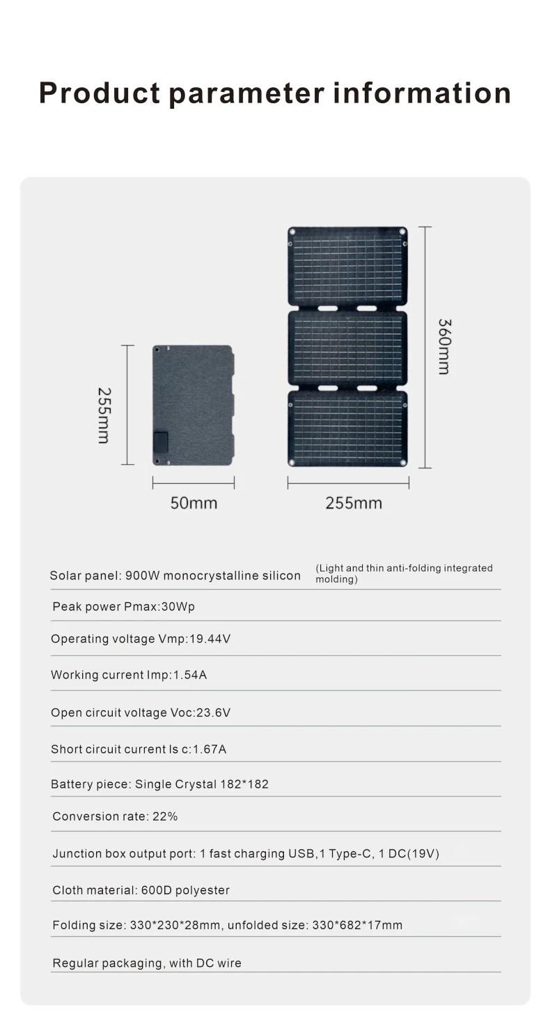 30W แผงพลังงานแสงอาทิตย์แบบพกพา Monocrystalline USB + Type-C Output กลางแจ้ง Charger Power Bank สําหรับ Camping โทรศัพท์แท็บเล็ตกล้องแฟน