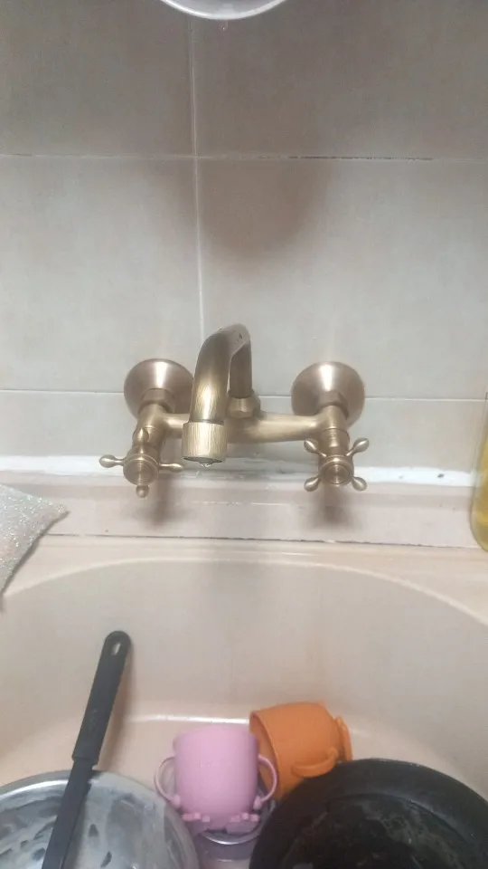 ทองเหลืองโบราณอ่างล้างหน้าก๊อกน้ําติดผนังห้องน้ํา Mixer Tap ร้อนเย็นก๊อกน้ําอ่างล้างจาน 360 หมุน ORB สีดํา Kitchen Mixer ก๊อก จาก 5 รีวิว