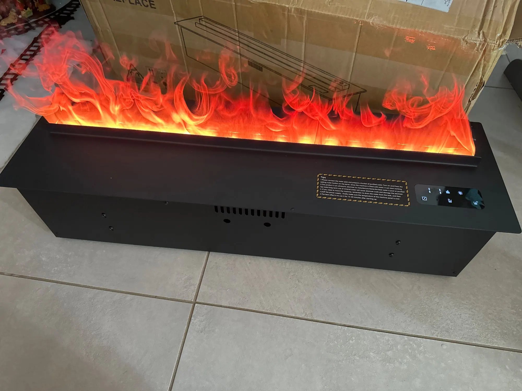 เราพอใจมากกับการซื้อครั้งนี้! เตาผิงมีขนาดใหญ่ แข็งแรง และทำอย่างสวยงาม เอฟเฟกต์ไอน้ำที่ผสมผสานกับแสงไฟทำให้เกิดเปลวไฟที่น่าทึ่งและสมจริงมาก เช่นเดียวกับไฟจริง