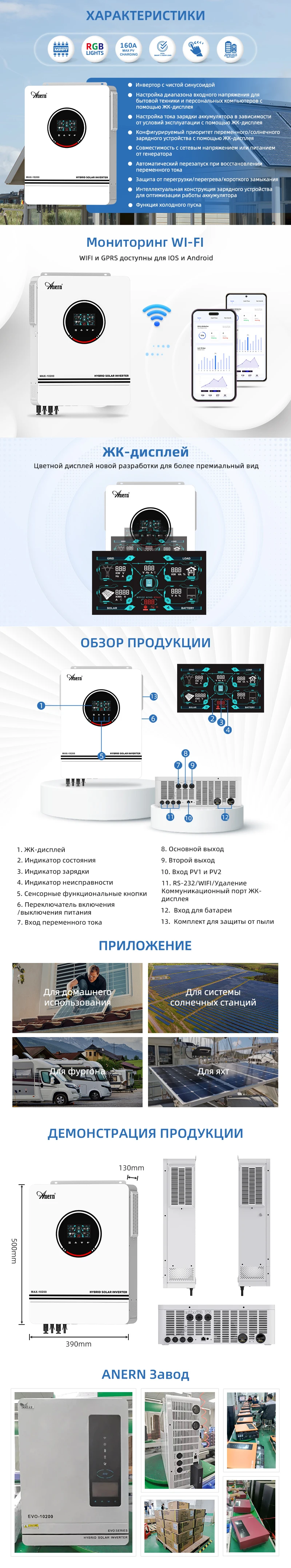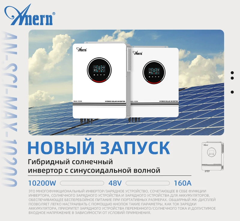 Anern 8.2KW 10.2KW Off Grid อินเวอร์เตอร์บนตาราง 230V Pure Sine Wave อินเวอร์เตอร์พลังงานแสงอาทิตย์ 48v Hybrid Dual Mppt 160A Solar Charger จาก 2 รีวิว