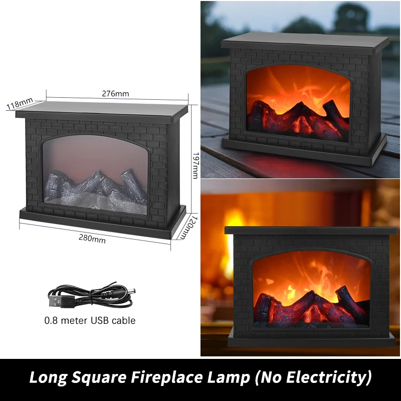 โคมไฟเตาผิง LED เปลวไฟสมจริง ใช้แบตเตอรี่ ชาร์จผ่าน USB สไตล์วินเทจ สำหรับตกแต่งภายในบ้าน ระเบียง คริสต์มาส ฮาโลวีน วางบนโต๊ะ