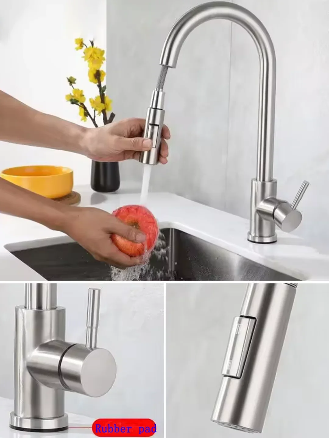 สีดํา/แปรงก๊อกน้ําห้องครัวสองฟังก์ชั่นเดี่ยวดึงออกผสมก๊อกน้ําร้อนและเย็น Countertop Mount