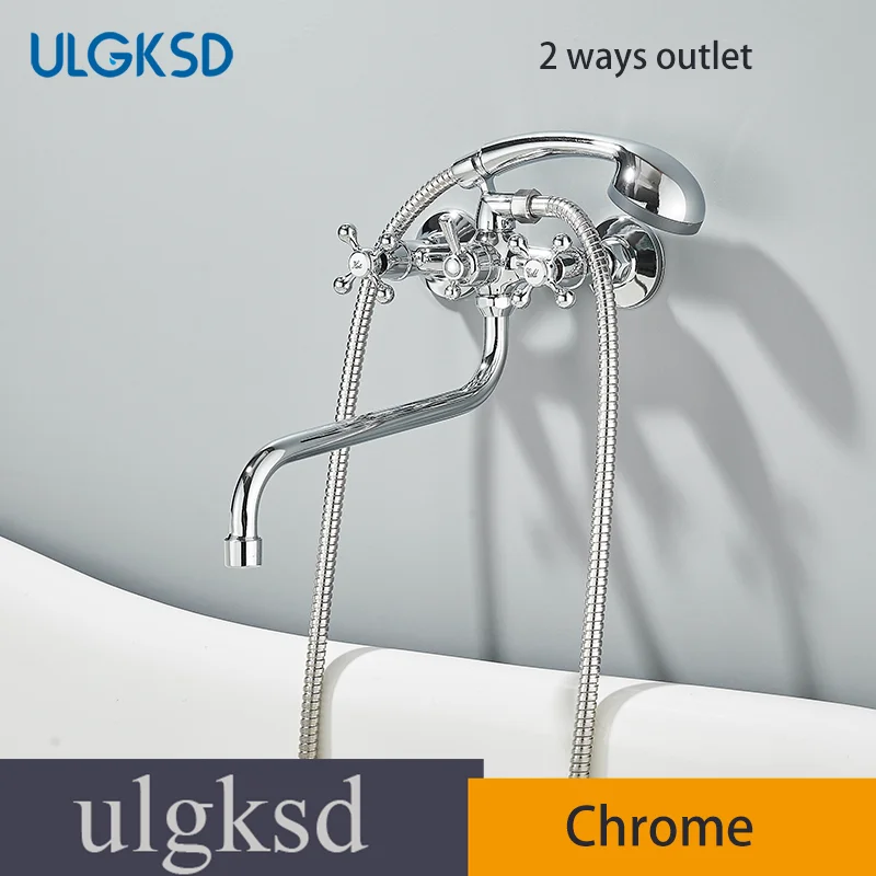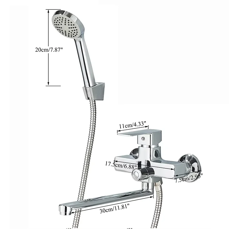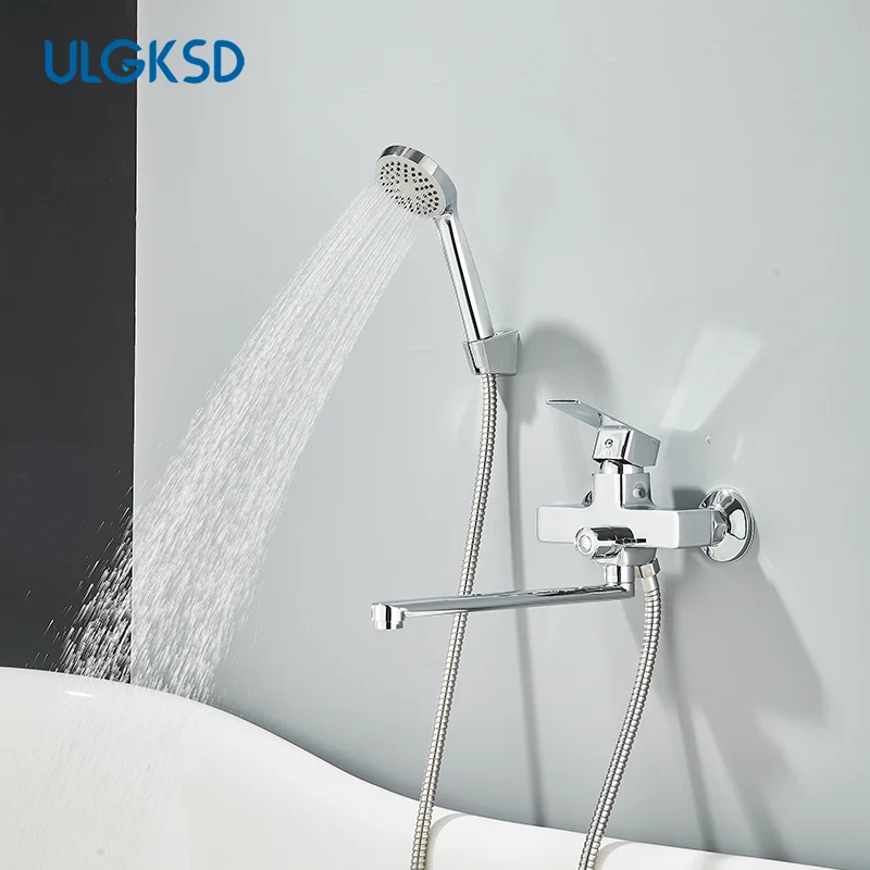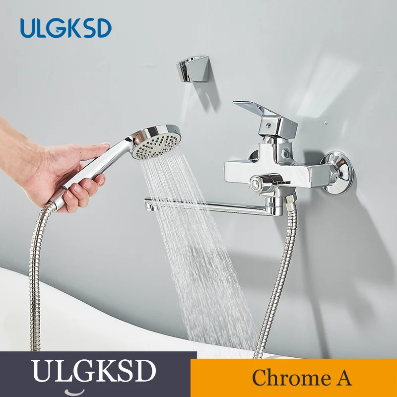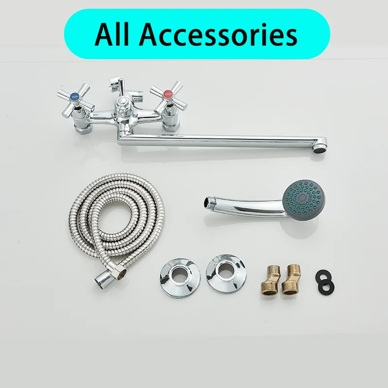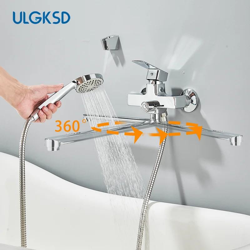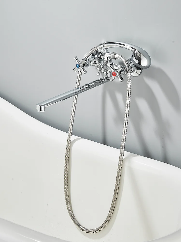 Chrome Alloy ติดผนังอ่างอาบน้ําก๊อกน้ําฝักบัวหมุนยาวก๊อกน้ําอ่างอาบน้ําก๊อกน้ําในครัวเรือนอ่างอาบน้ําชุดฝักบัว