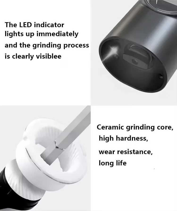 ชุดเครื่องบดเกลือและพริกไทยไฟฟ้าอัตโนมัติ พร้อมไฟ LED ชุดเครื่องบดเครื่องเทศ ปรับระดับการบดได้ อุปกรณ์ครัว