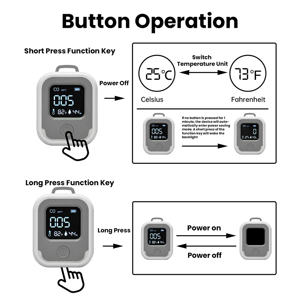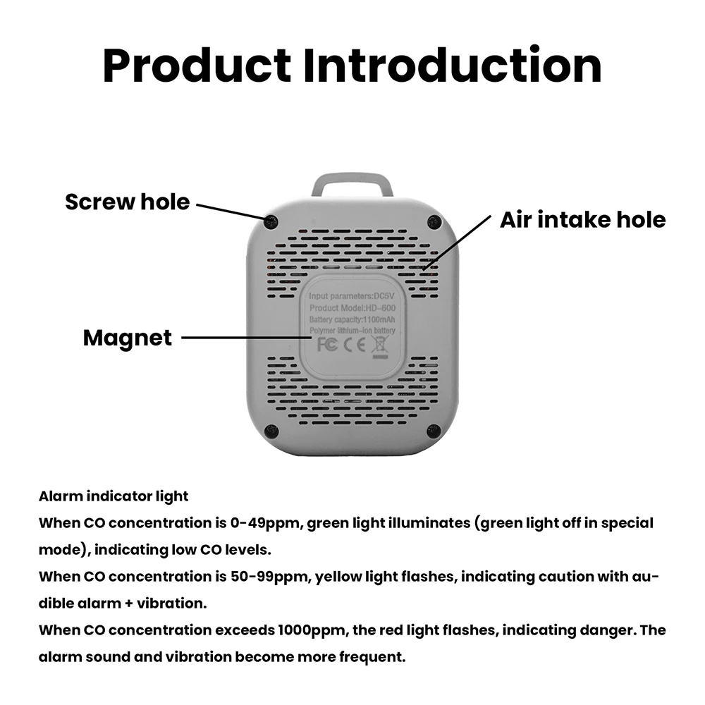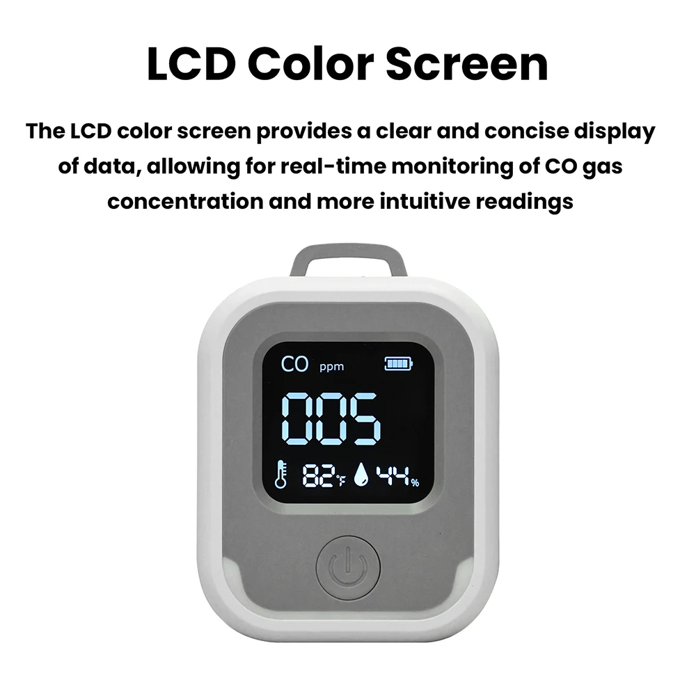 3. หน้าจอสี LCD ที่ชัดเจน แสดงข้อมูลได้อย่างชัดเจนในพริบตา ตรวจสอบความละลายของก๊าซคาร์บอนมอนอกไซด์แบบเรียลไทม์ อ่านค่าได้ง่ายและเข้าใจได้มากขึ้น