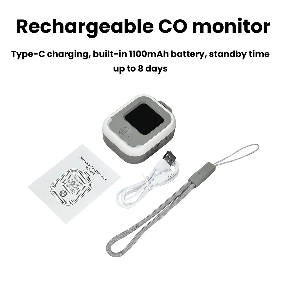เครื่องตรวจจับคาร์บอนมอนอกไซด์แบบพกพา จอแสดงผล LCD ฟังก์ชั่นสามประการ สำหรับการเดินทาง บ้าน รถบ้าน RV เครื่องตรวจจับ CO พร้อมเซ็นเซอร์วัดความชื้นและอุณหภูมิ