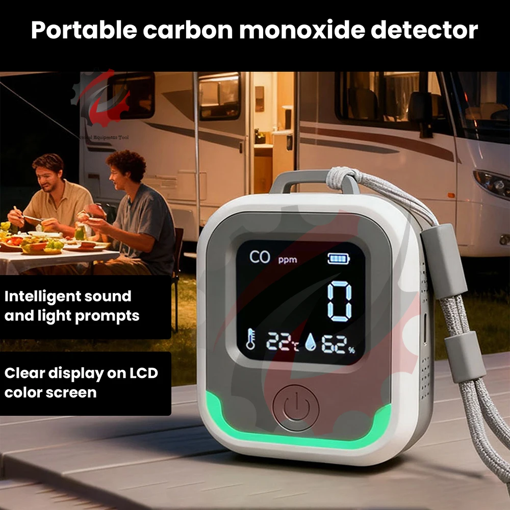 เครื่องตรวจจับคาร์บอนมอนอกไซด์แบบพกพา จอแสดงผล LCD ฟังก์ชั่นสามประการ สำหรับการเดินทาง บ้าน รถบ้าน RV เครื่องตรวจจับ CO พร้อมเซ็นเซอร์วัดความชื้นและอุณหภูมิ