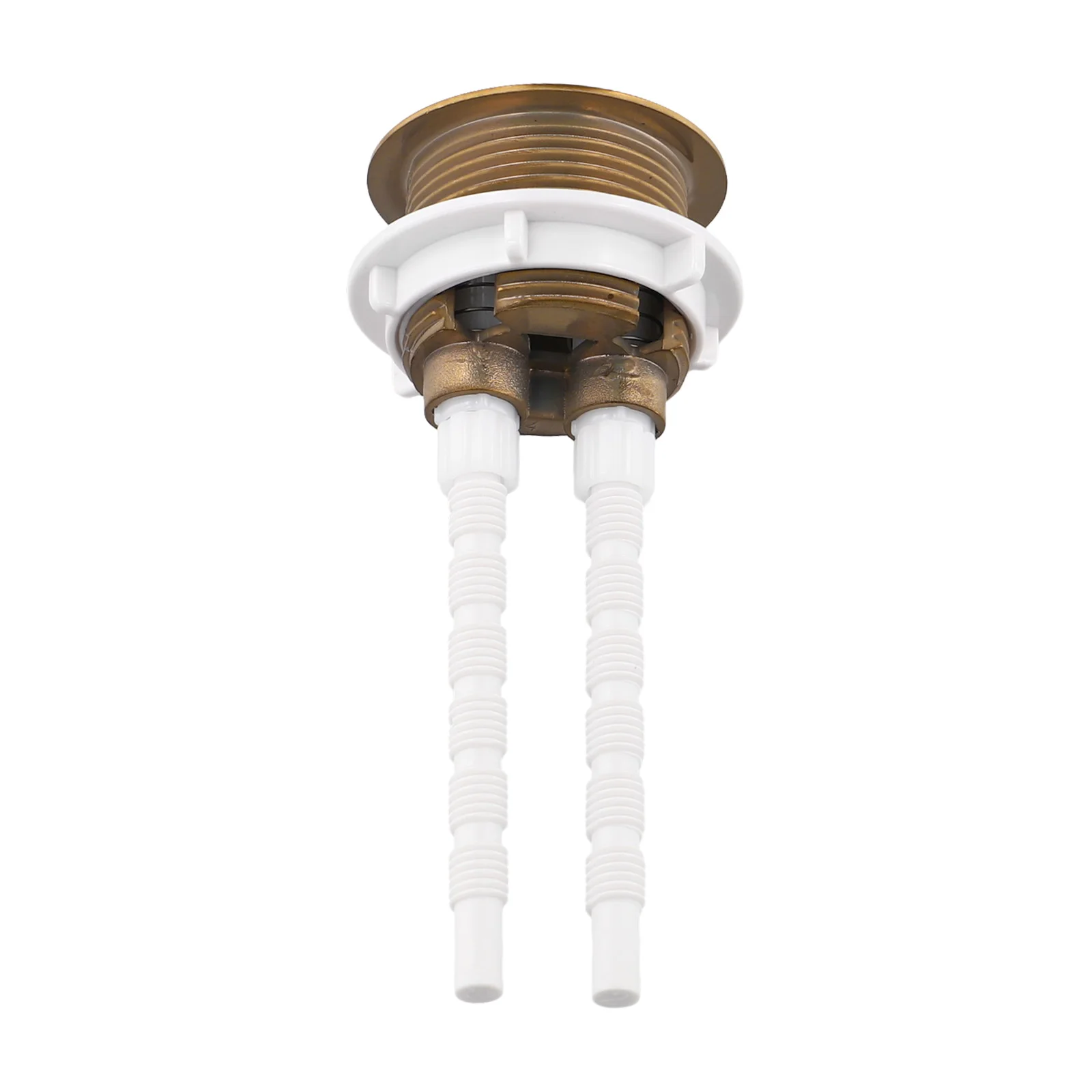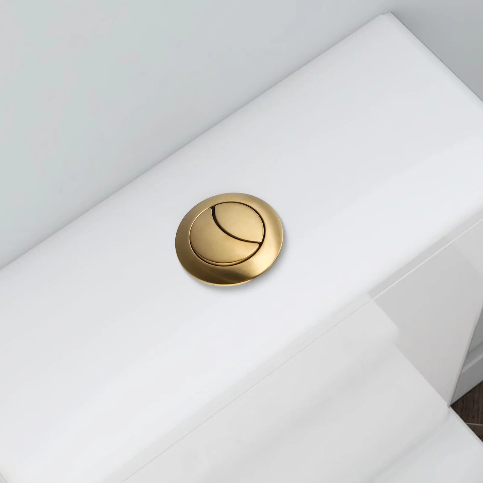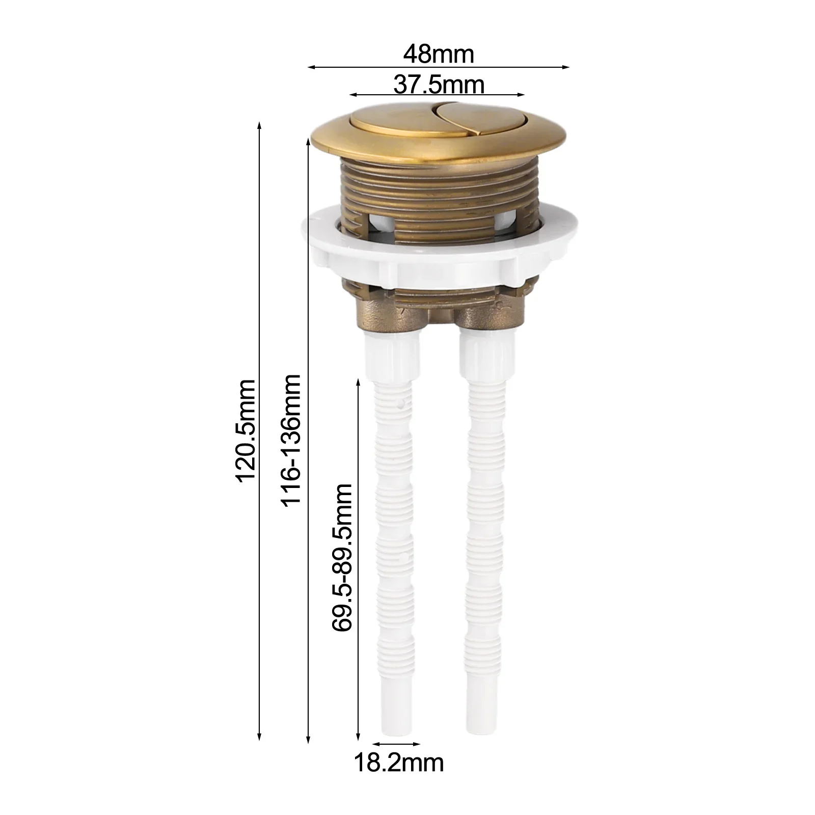 ปุ่มกดชักโครกแบบติดตั้งแนบกระโถน ขนาด 38/48/58 มม. สีทองเหลืองขัดเงา วัสดุ ABS พร้อมวาล์วกดแบบกดสองระดับ สำหรับห้องน้ำ