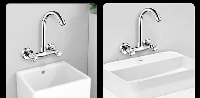 ติดผนังห้องครัว TAP คู่ก๊อกน้ําห้องครัวเย็นและน้ําร้อน TAP 360 หมุนอ่างล้างจานก๊อกน้ําอุปกรณ์ครัว