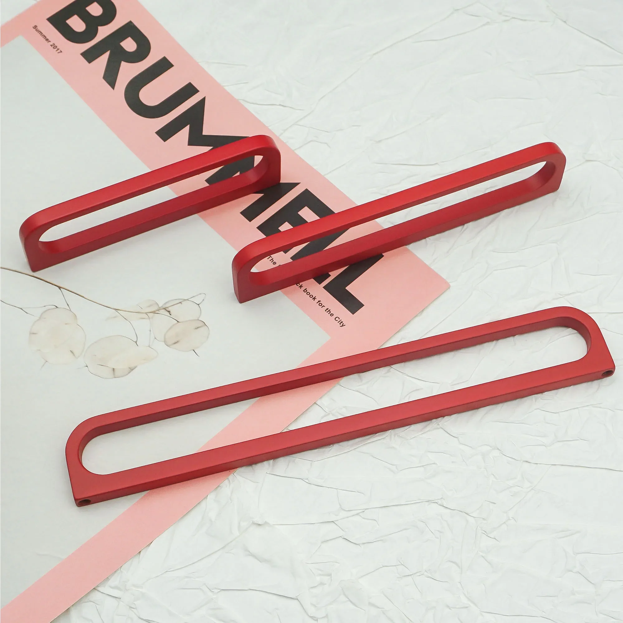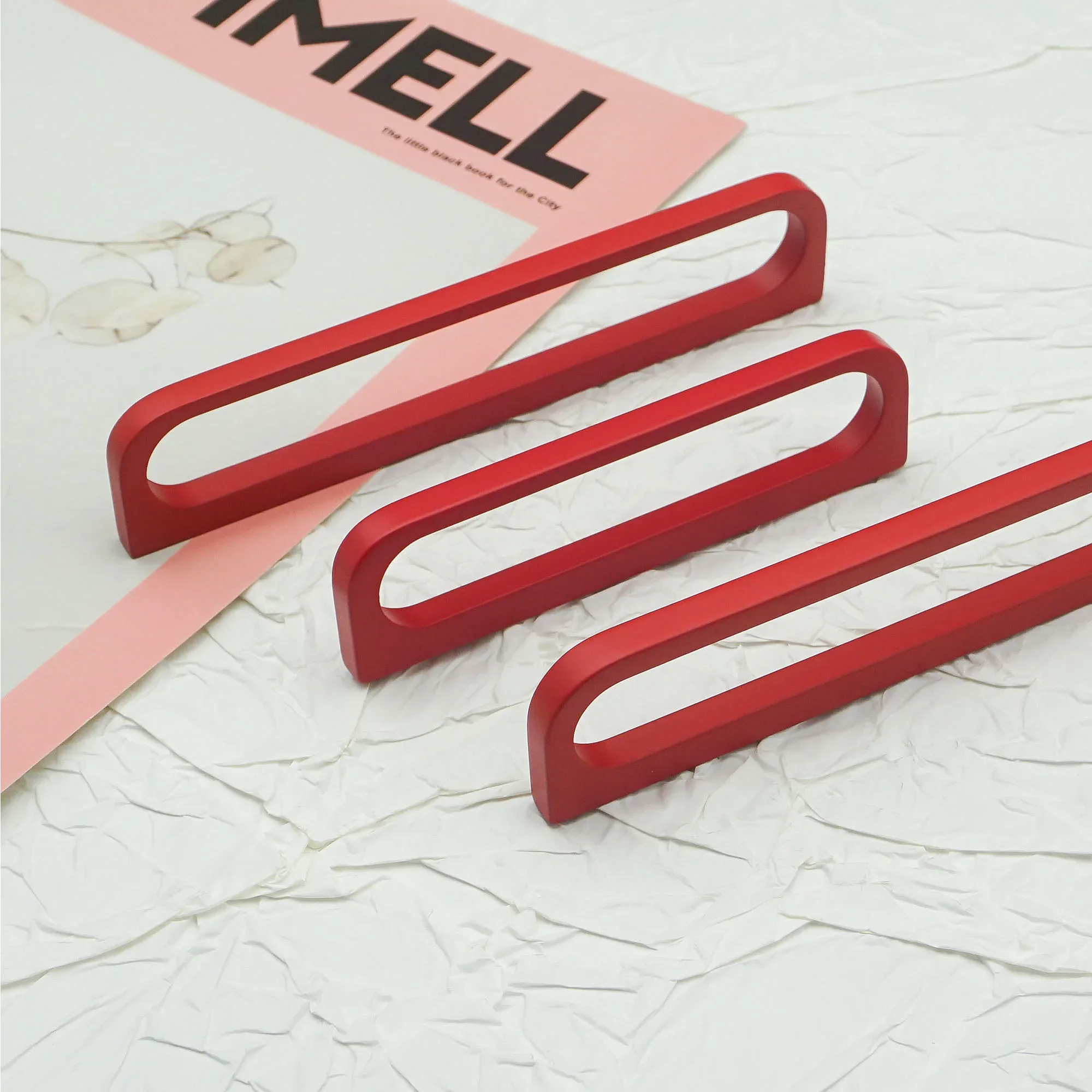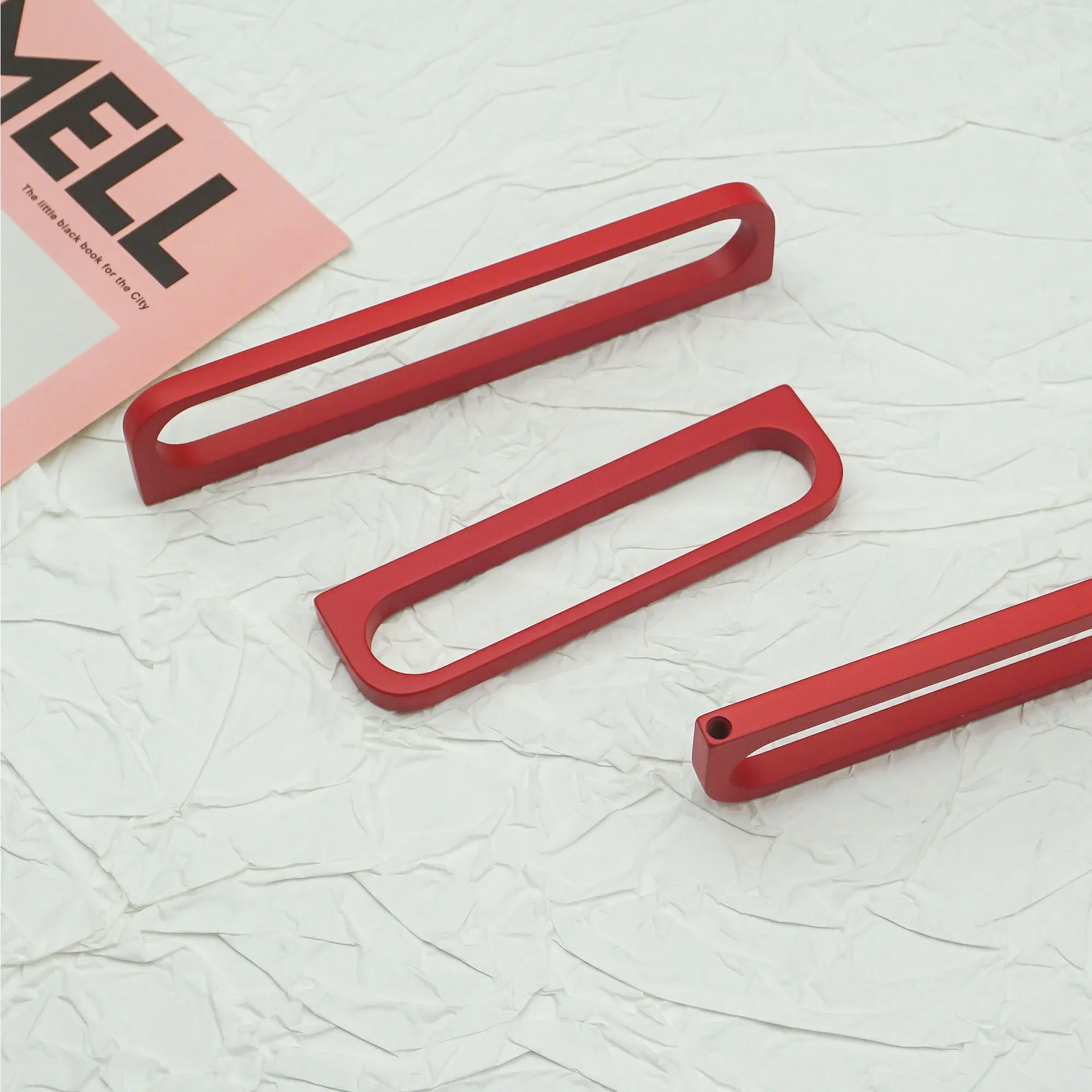 Matte Red ตู้จับห้องนอนที่เรียบง่ายตู้เสื้อผ้าดึงตู้ครัวลูกบิดประตูโมเดิร์นสังกะสีอัลลอยด์เฟอร์นิเจอร์ฮาร์ดแวร์