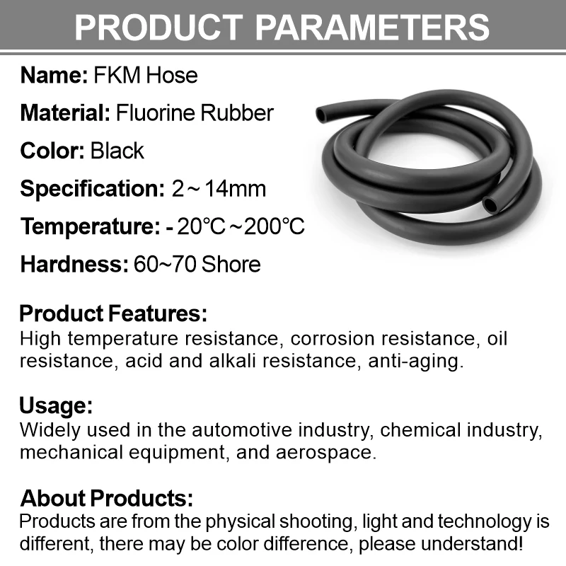 สายยาง FKM Viton ขนาด 2 4 6 8 10 12 14 มม. ความยาว 2 เมตร ทนความร้อนสูง ทนน้ำมัน ทนการกัดกร่อน ทนกรด-ด่าง สำหรับงานอุตสาหกรรม
