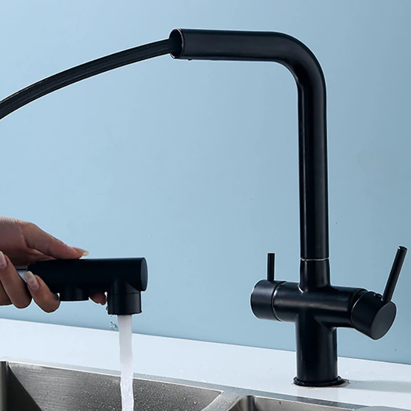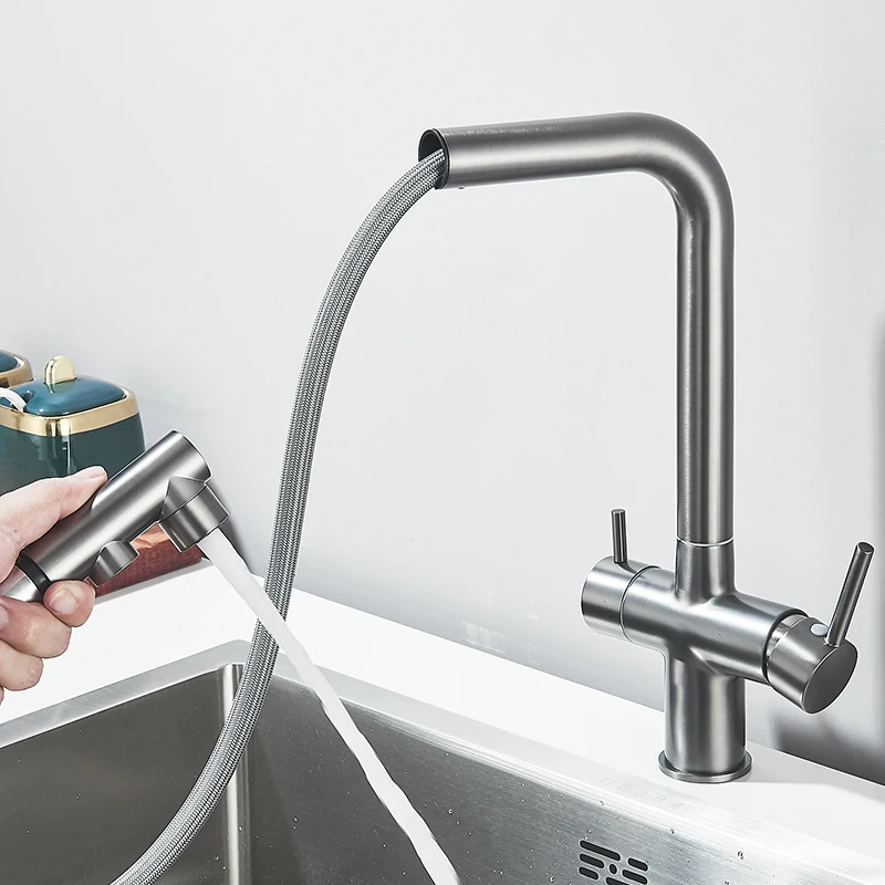 กรองก๊อกน้ำสำหรับห้องครัวทองเหลือง Purifier ก๊อกน้ำ Dual Sprayer น้ำดื่ม Tap หัวฉีดอ่างล้างจานห้องครัว Gold Tap