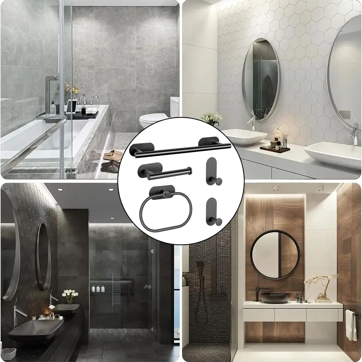 เหมาะสำหรับทั้งห้องน้ำและห้องครัว ชุดนี้ประกอบด้วยที่ใส่กระดาษชำระ ราวแขวนผ้าเช็ดตัว และอุปกรณ์เสริมที่จำเป็นอื่นๆ เพื่อให้พื้นที่ของคุณเป็นระเบียบและเป็นระเบียบเรียบร้อย