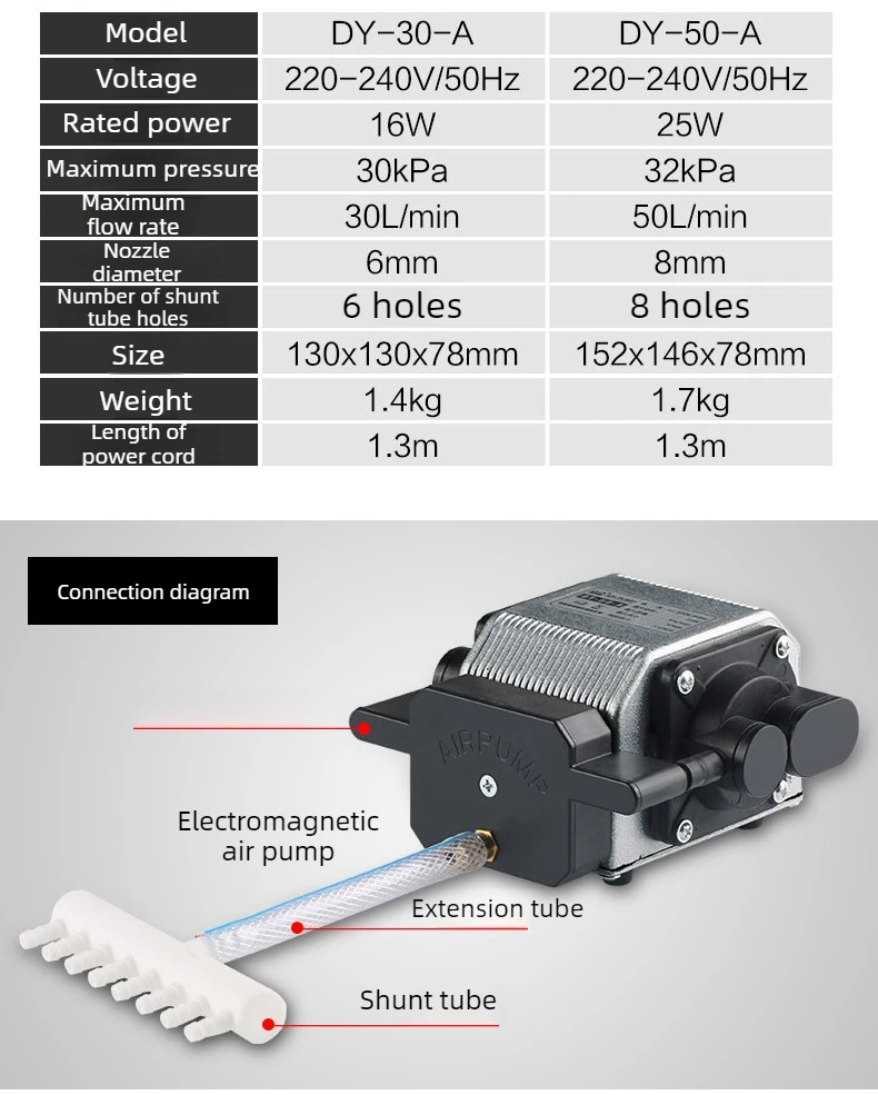 ปั๊มลมตู้ปลา ปั๊มออกซิเจนแม่เหล็กไฟฟ้า ปั๊มออกซิเจนสำหรับบ่อปลา ปั๊มออกซิเจนเงียบสำหรับตู้ปลา ปั๊มเติมอากาศสำหรับบ่อปลา ตัวกระจายอากาศ