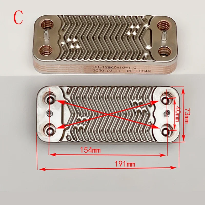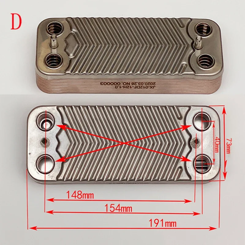 เครื่องแลกเปลี่ยนความร้อนรองแผ่นเหล็กสแตนเลสสากลสําหรับหม้อต้มแก๊สติดผนัง 10 12 14 ชั้น 1 ชิ้น