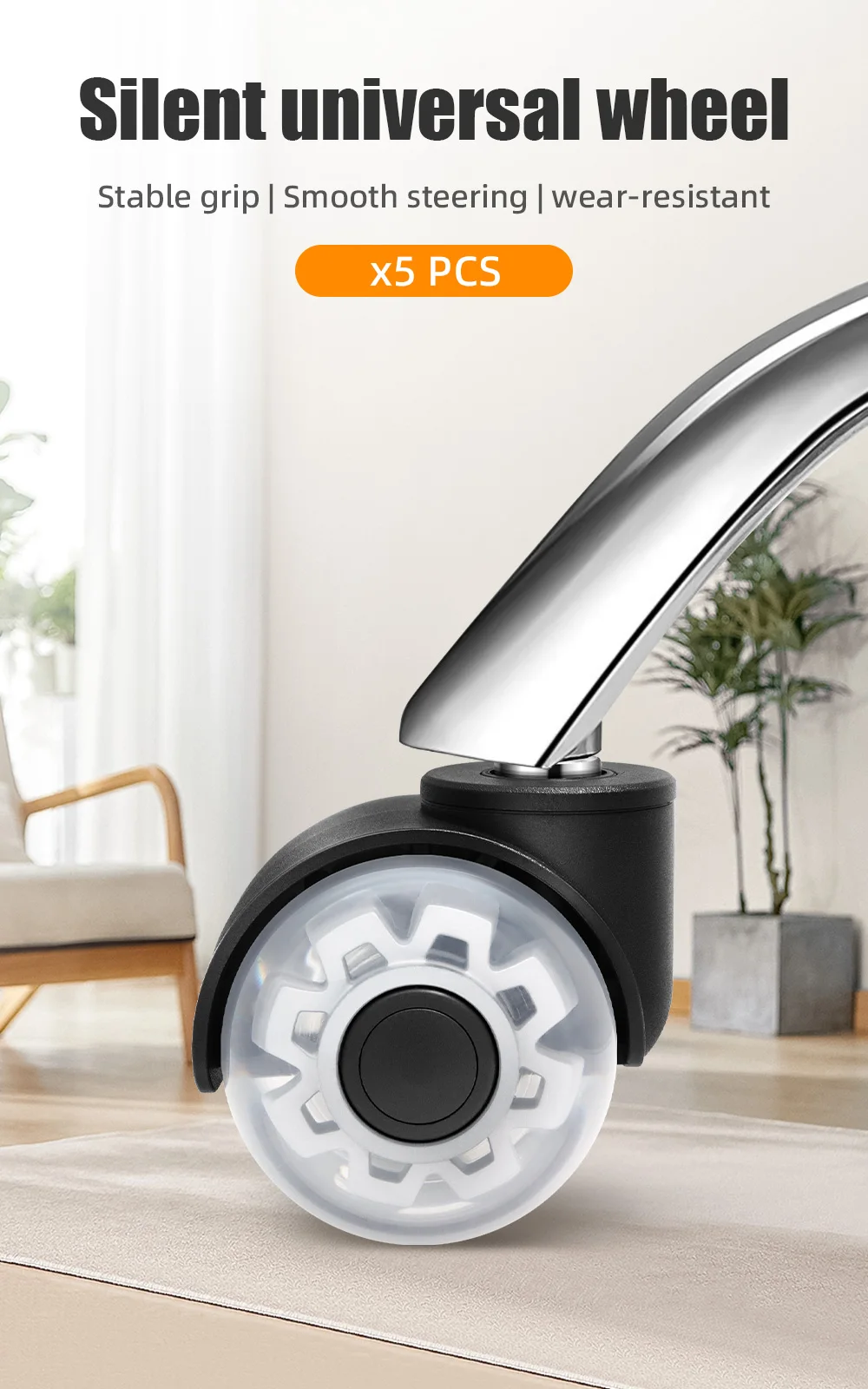 ล้อเลื่อนไร้เสียงอเนกประสงค์5ชิ้นสำหรับสำนักงานล้อฐานเก้าอี้ยางแบบนิ่มปลอดภัยลูกกลิ้งอุปกรณ์เหล็กเครื่องตกแต่งบ้านล้อเก้าอี้สำหรับโต๊ะทำงาน