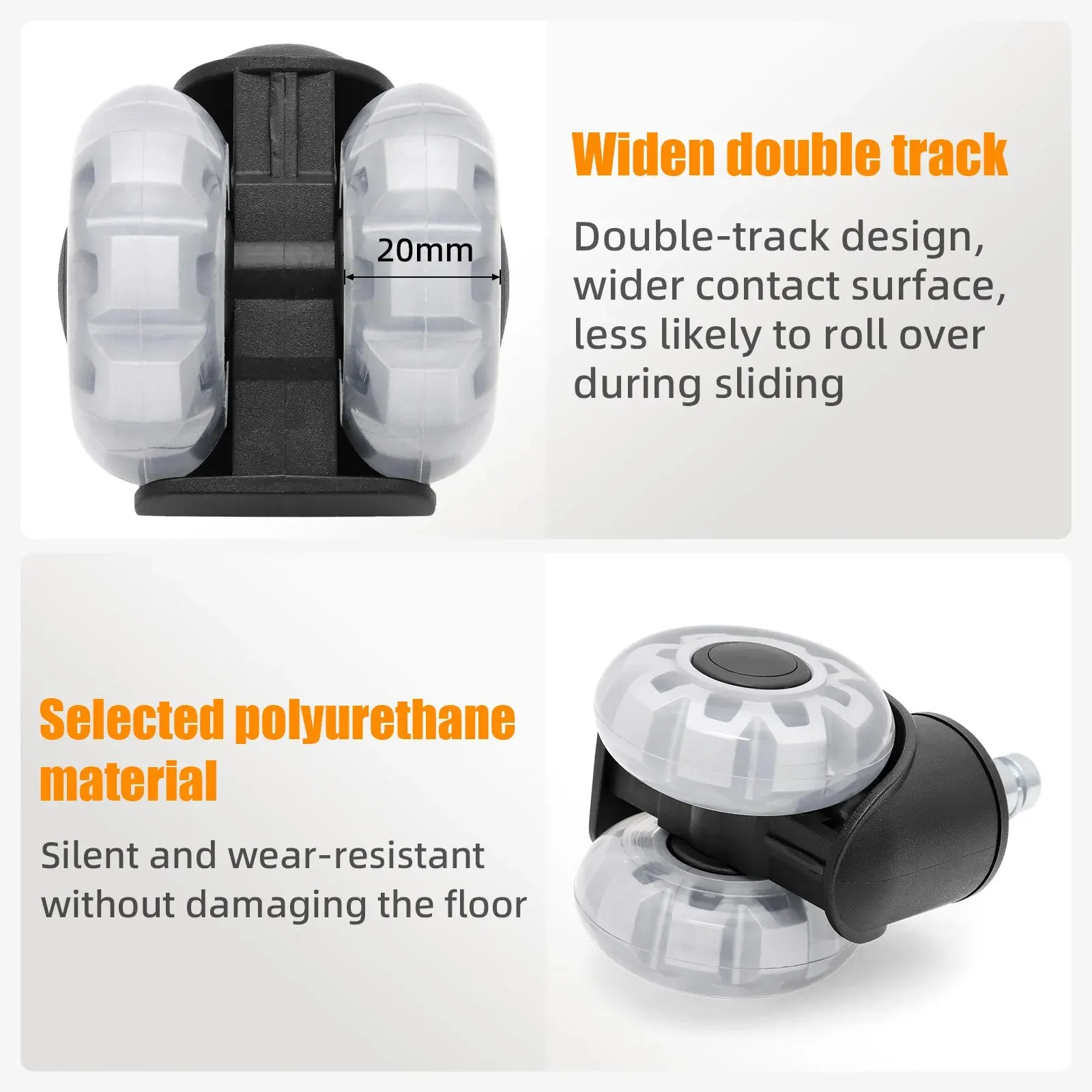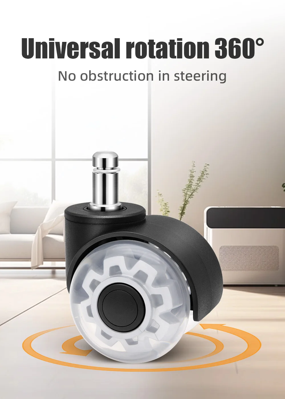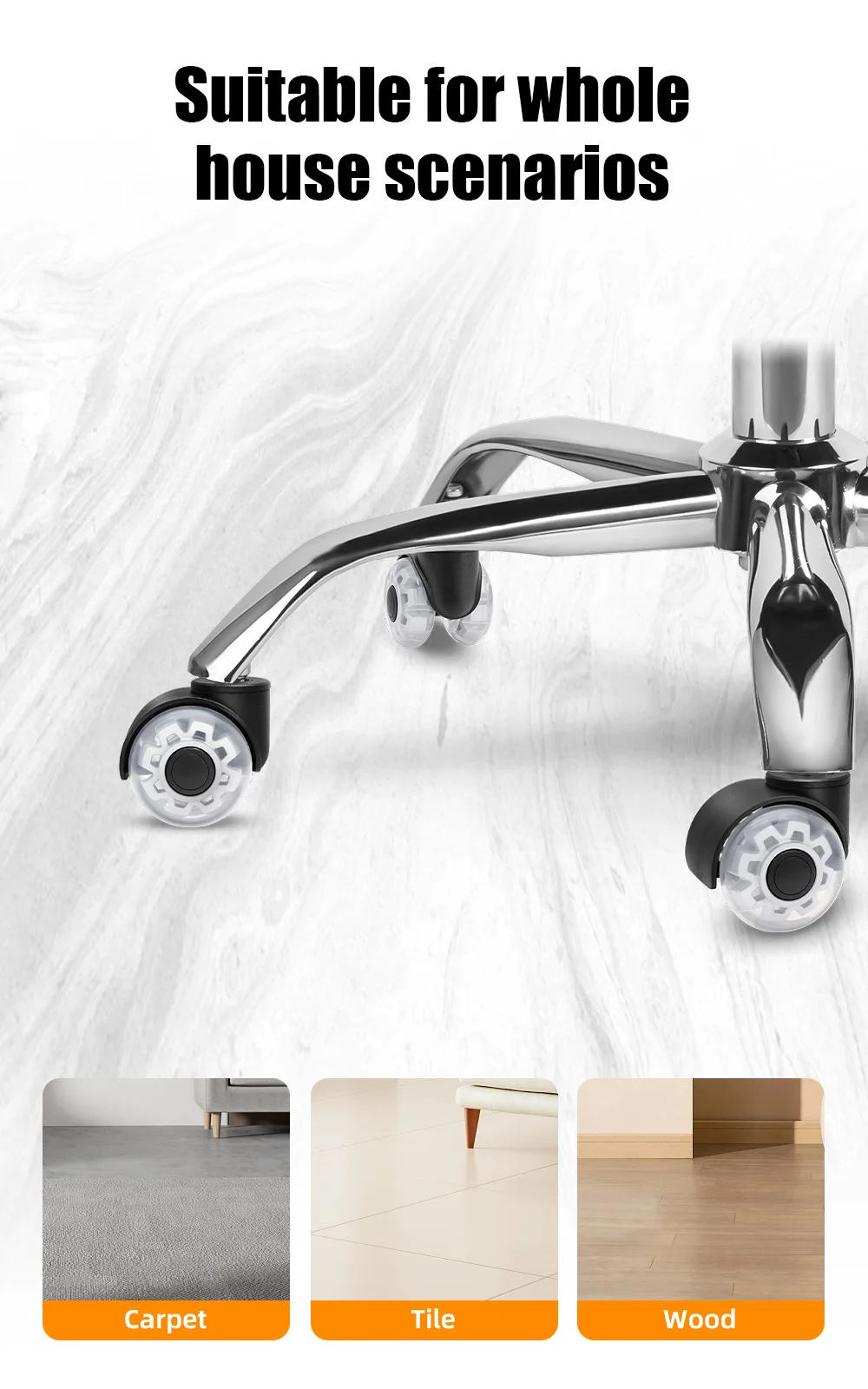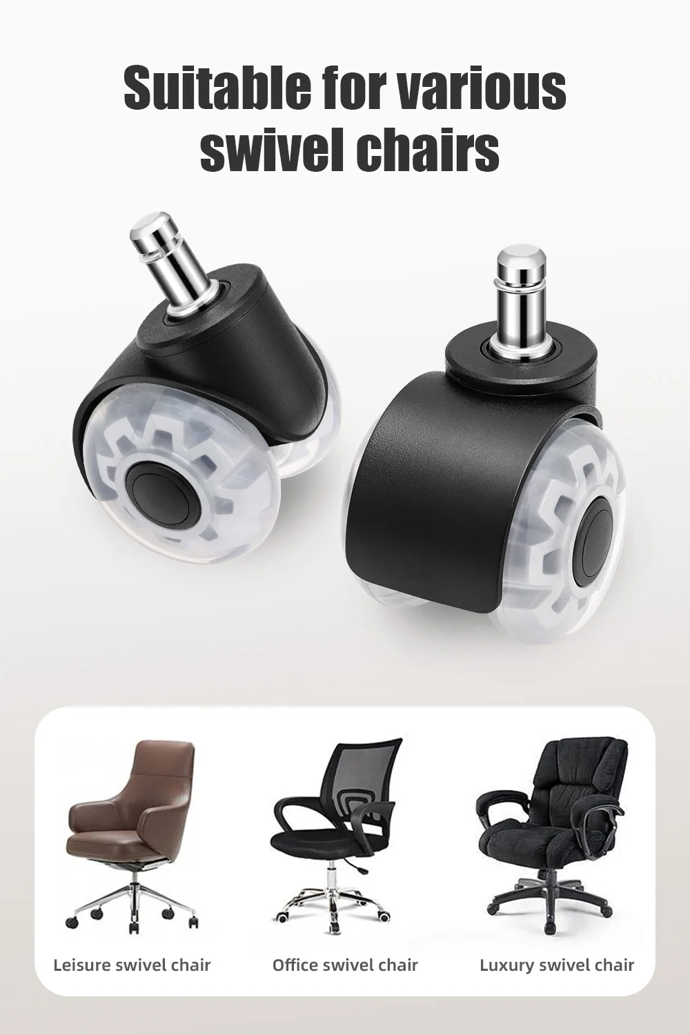 • อเนกประสงค์ :ล้อเหล่านี้ได้รับการออกแบบในระดับสากลทำให้เหมาะสำหรับเก้าอี้สำนักงานหรือโต๊ะทำงานใดๆพวกเขาให้ม้วนเรียบและเงียบเพิ่มประสบการณ์การทำงานของคุณ