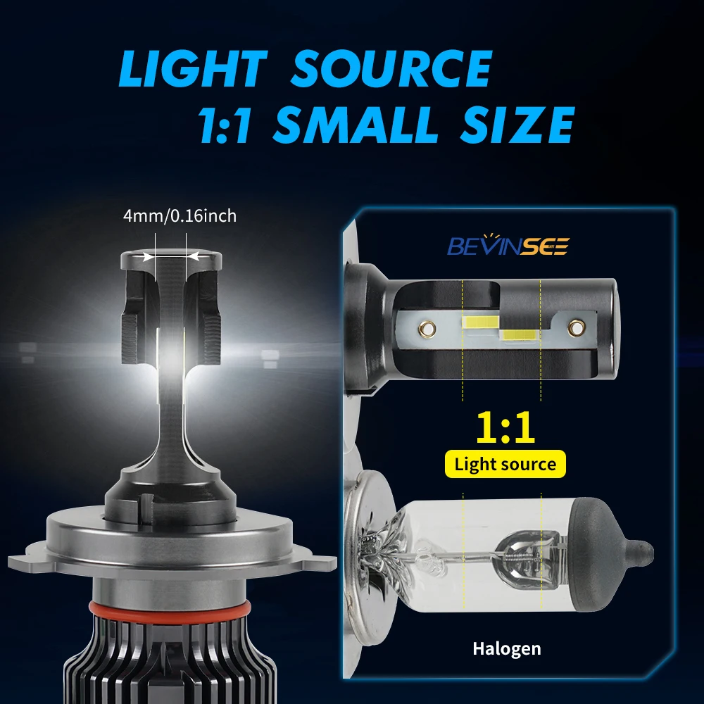 สว่างกว่าฮาโลเจน: ชิป CSP 1860 พร้อมการเปล่งแสงสองด้านเพื่อให้แน่ใจว่ารูปแบบลําแสงและความสว่างที่ดีขึ้นไฟ LED ของ Bevinsee มาพร้อมมุมลําแสงที่แม่นยํา ไม่พราว ไม่ส่งผลต่อคนขับที่กําลังมาทางซ้ายด้านหน้า