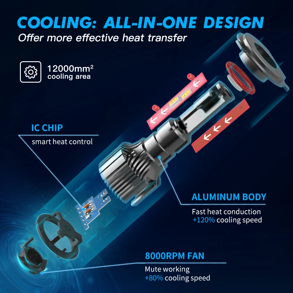 ระบบระบายความร้อนที่ยอดเยี่ยม: ใช้ชิปแผ่นทองแดง พัดลม 8000 รอบต่อนาทีเพื่อเร่งการกระจายความร้อน เสียงรบกวนน้อยลง ผลการกระจายความร้อนที่ดีขึ้น สามารถปกป้องชิป LED ได้ดีขึ้น ยืดอายุการใช้งาน