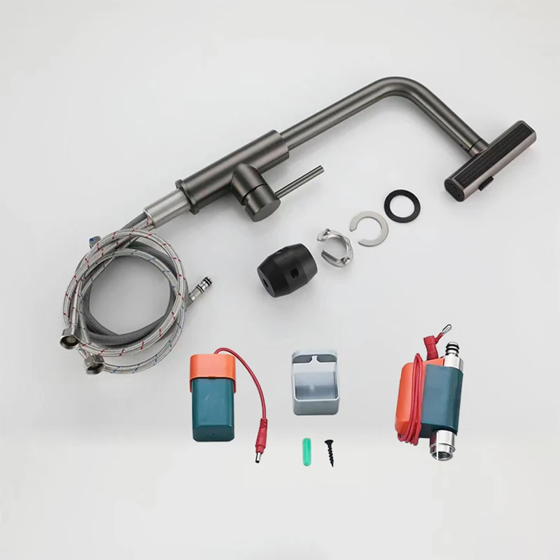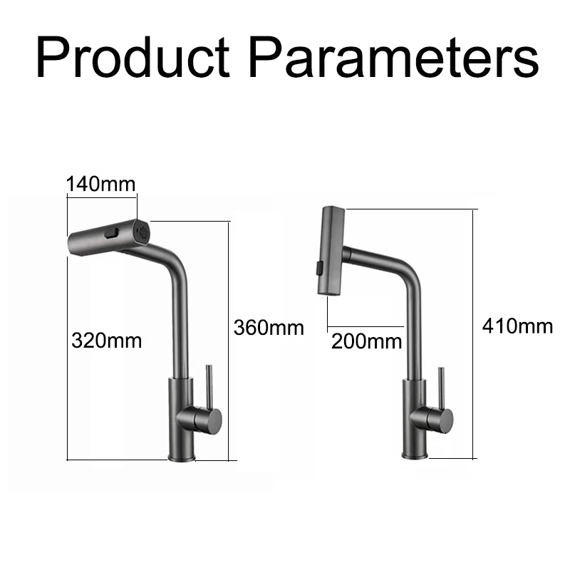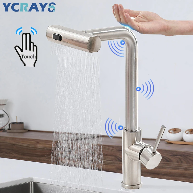Ycrays ก๊อกน้ำสำหรับห้องครัวสัมผัสความรู้สึกแบบ3โหมดสีดำเครนแบบมีแปรงนิกเกิลเซ็นเซอร์ดึงออกผสมน้ำเย็นก๊อกน้ำอ่างล้างหน้าสีเทา