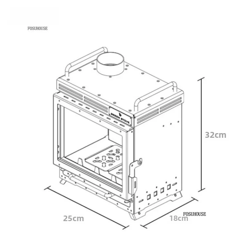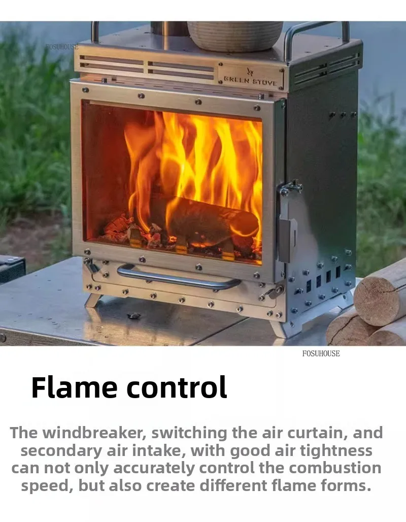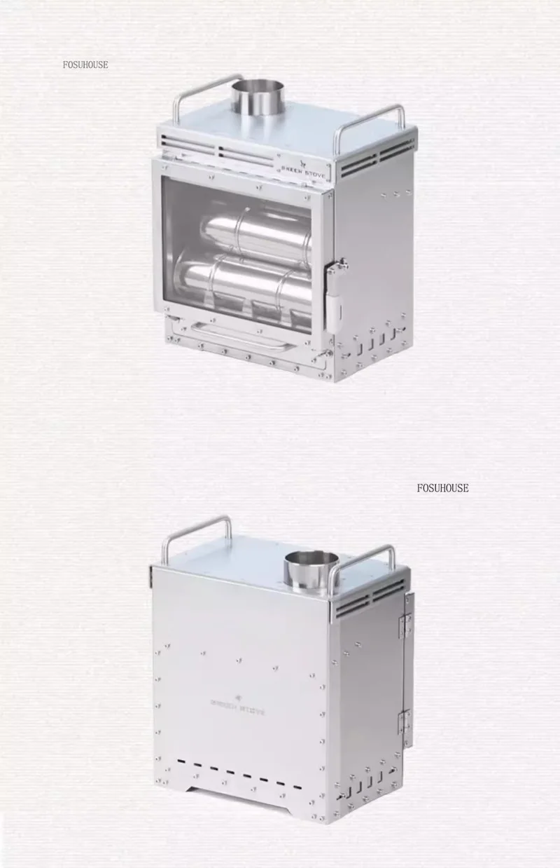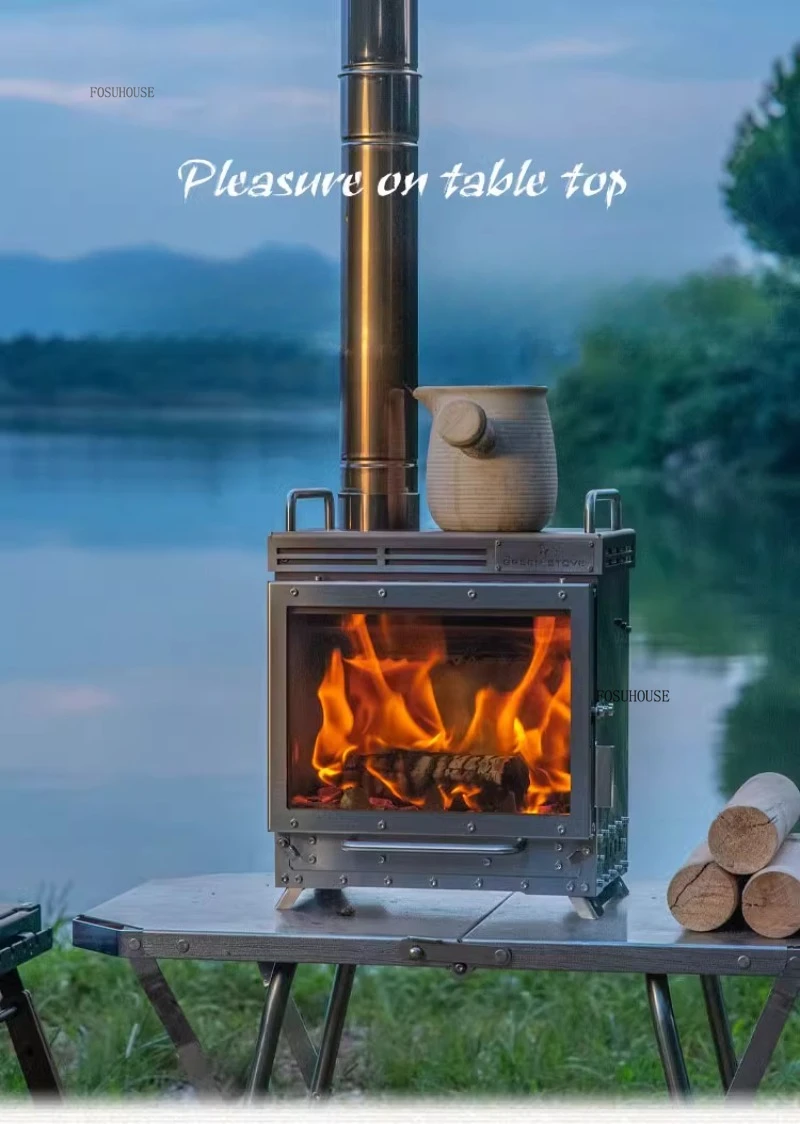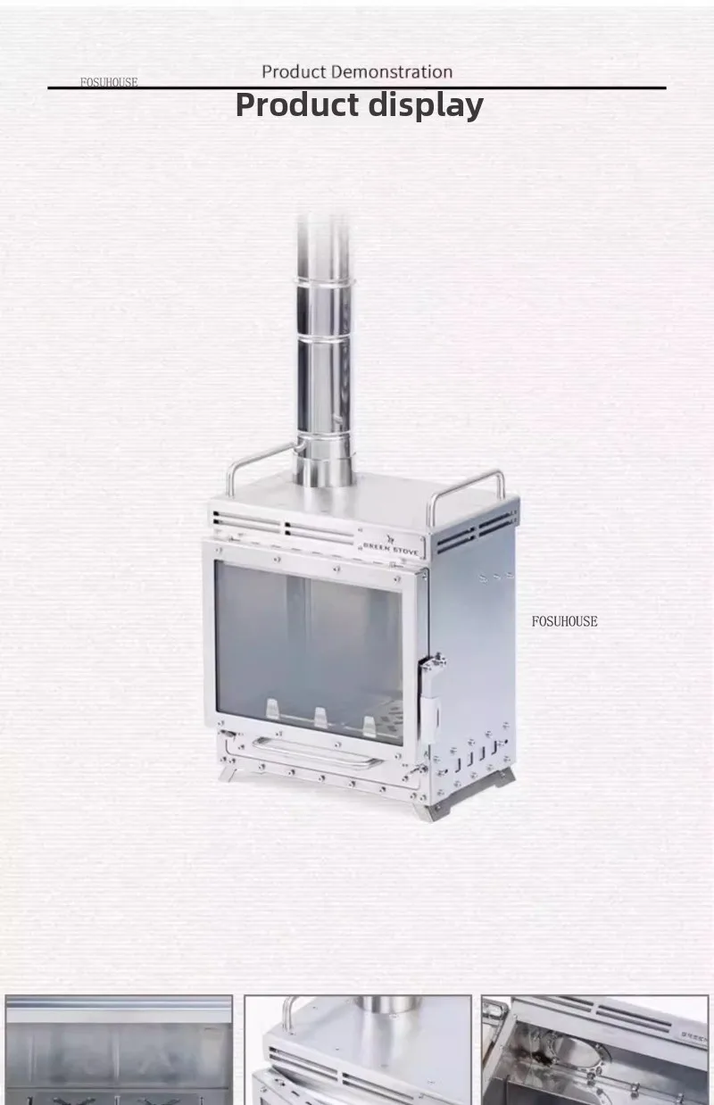 เตาผิงสแตนเลสพร้อมปล่องไฟรอง Burning เตาไม้กระจกหน้าต่าง Camping เต็นท์เตาฟืนเครื่องทําความร้อน Brazier