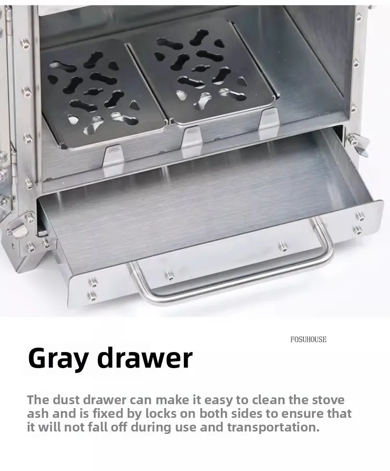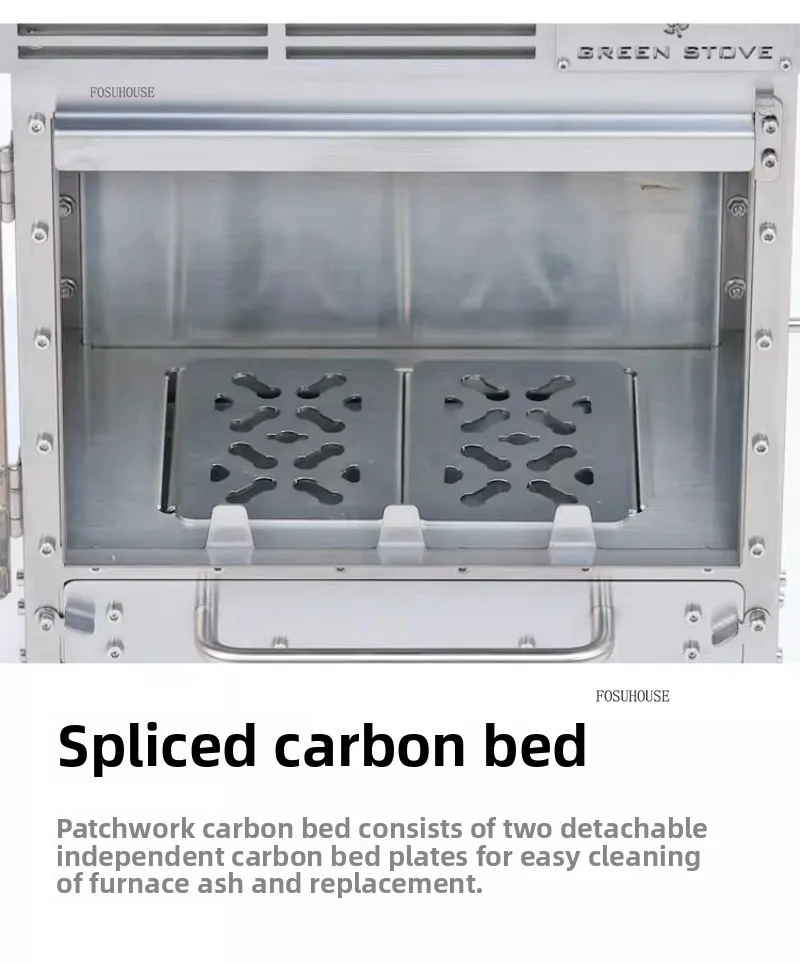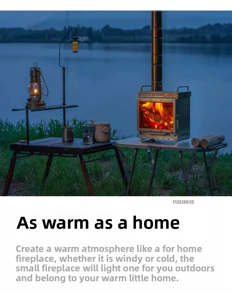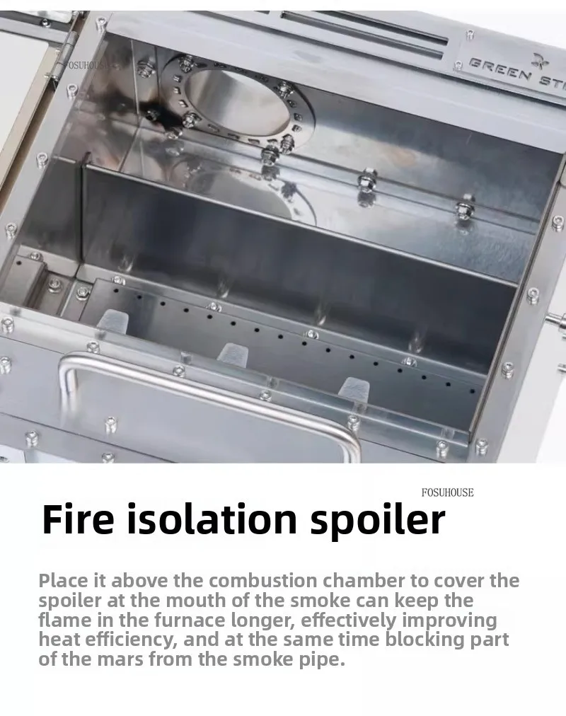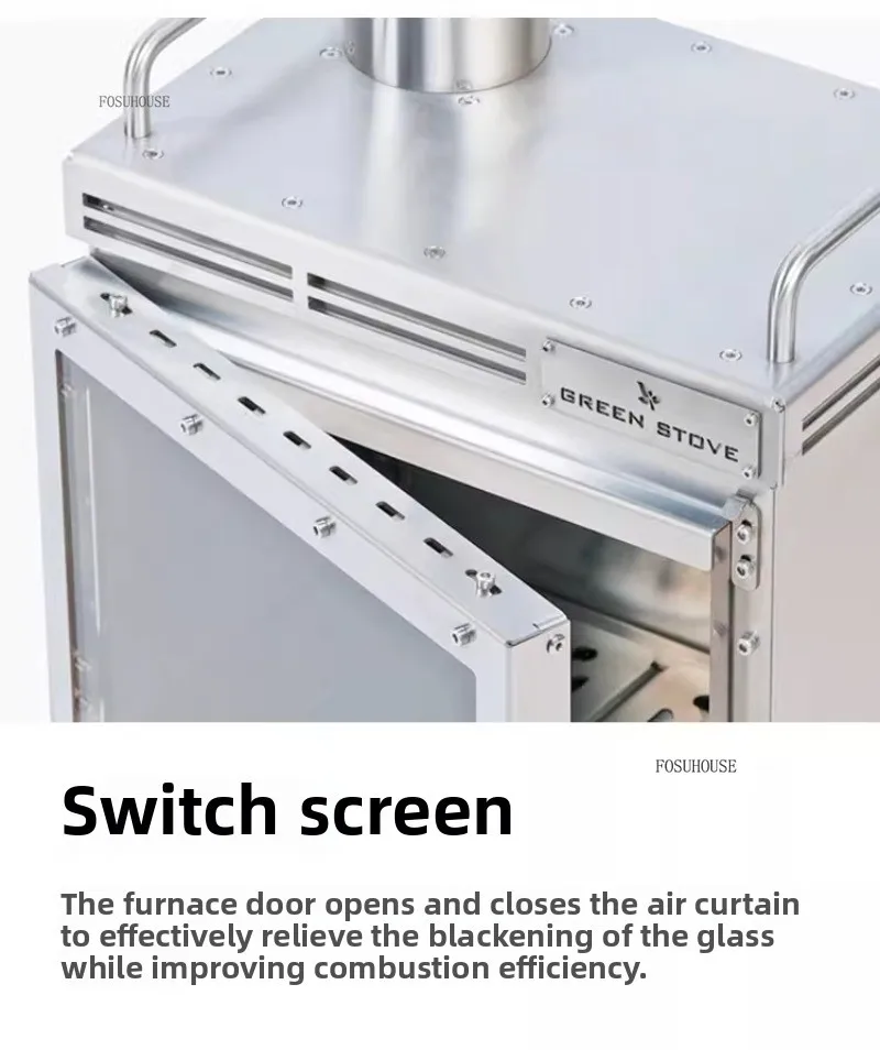 เตาผิงสแตนเลสพร้อมปล่องไฟรอง Burning เตาไม้กระจกหน้าต่าง Camping เต็นท์เตาฟืนเครื่องทําความร้อน Brazier