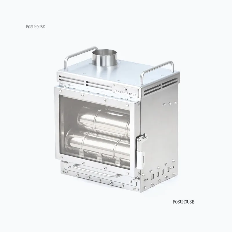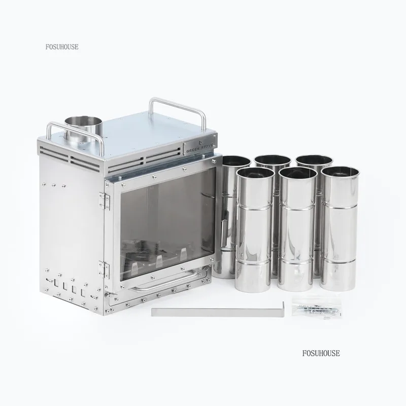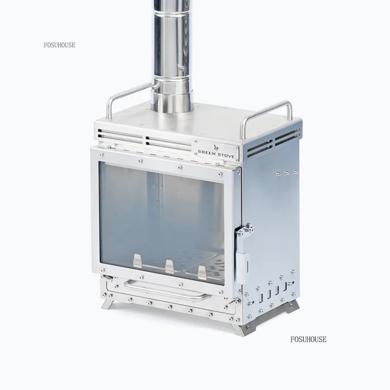 เตาผิงสแตนเลสพร้อมปล่องไฟรอง Burning เตาไม้กระจกหน้าต่าง Camping เต็นท์เตาฟืนเครื่องทําความร้อน Brazier