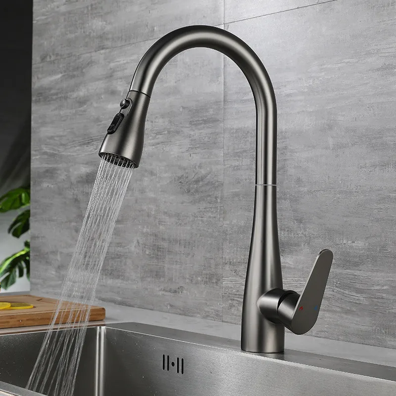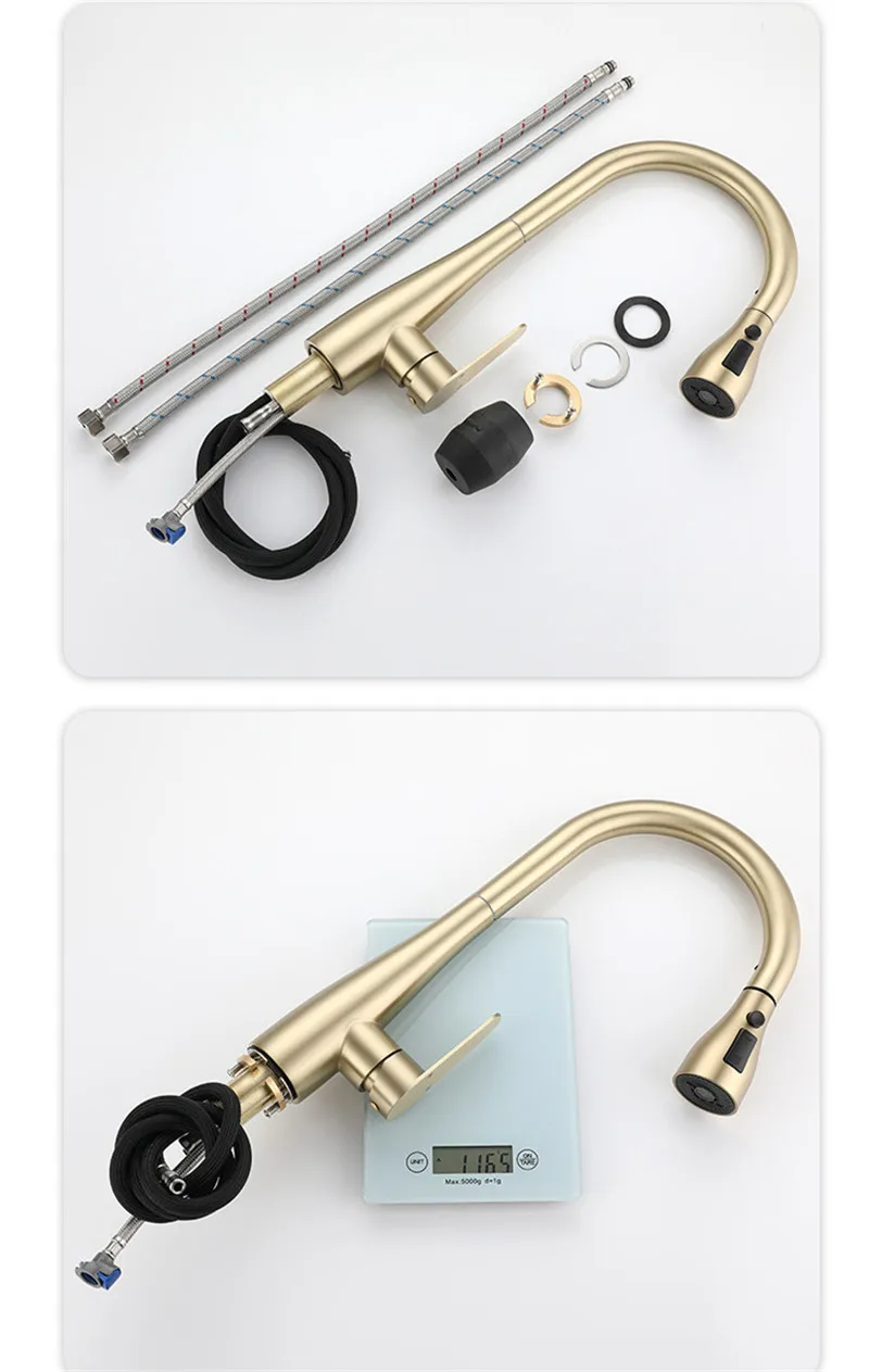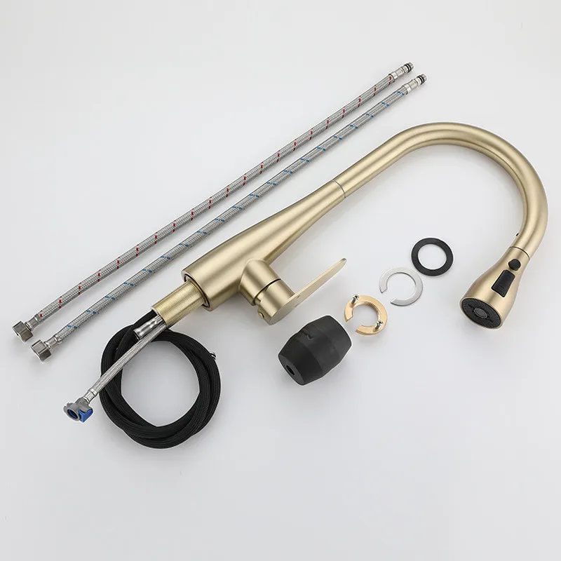 Brushed Gold ดึงออกก๊อกน้ําห้องครัว SUS304 ก๊อกน้ําอ่างล้างจาน TAP หมุน 360 องศา torneira cozinha ก๊อกครัว TAP