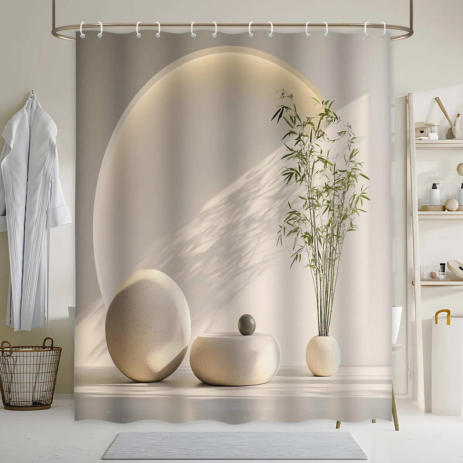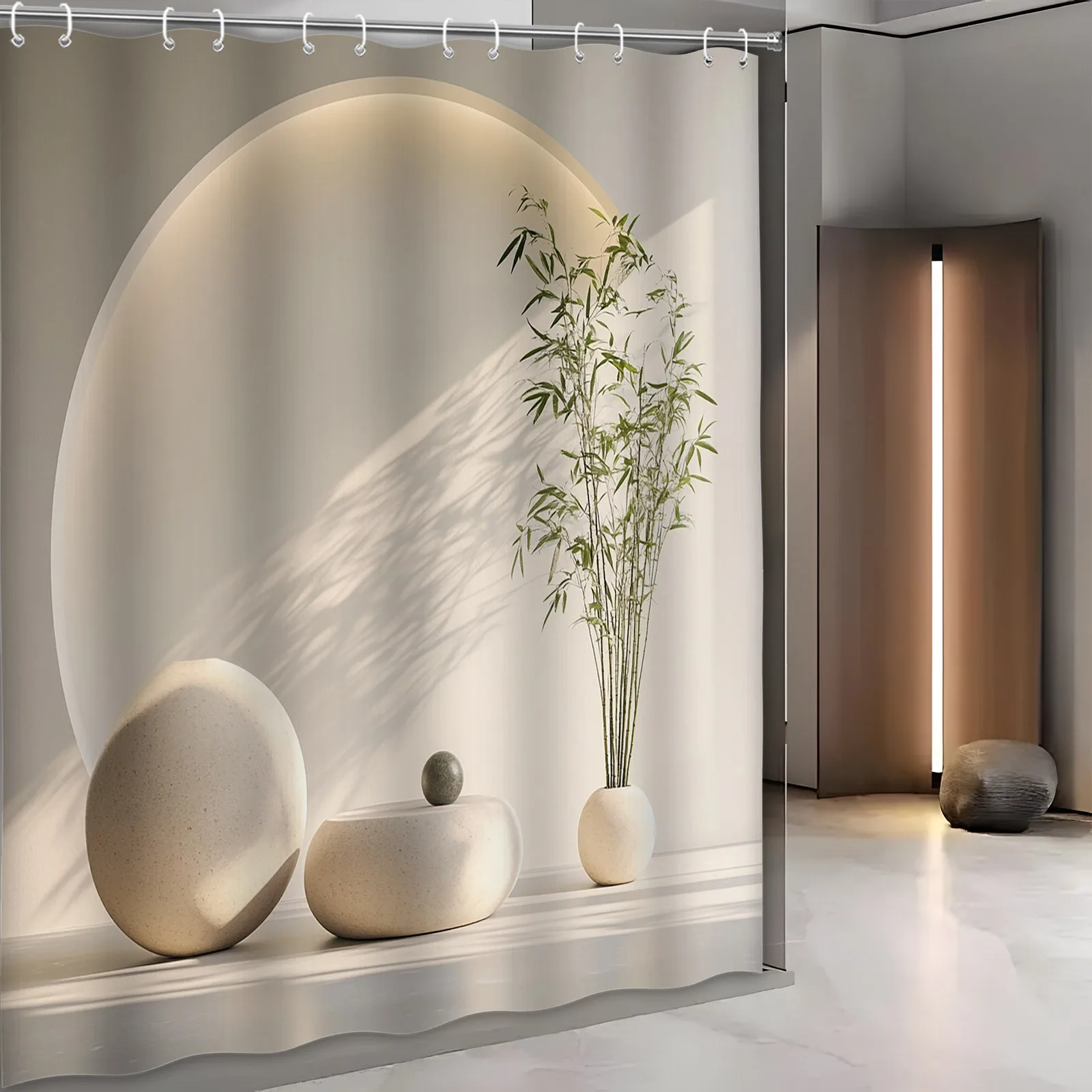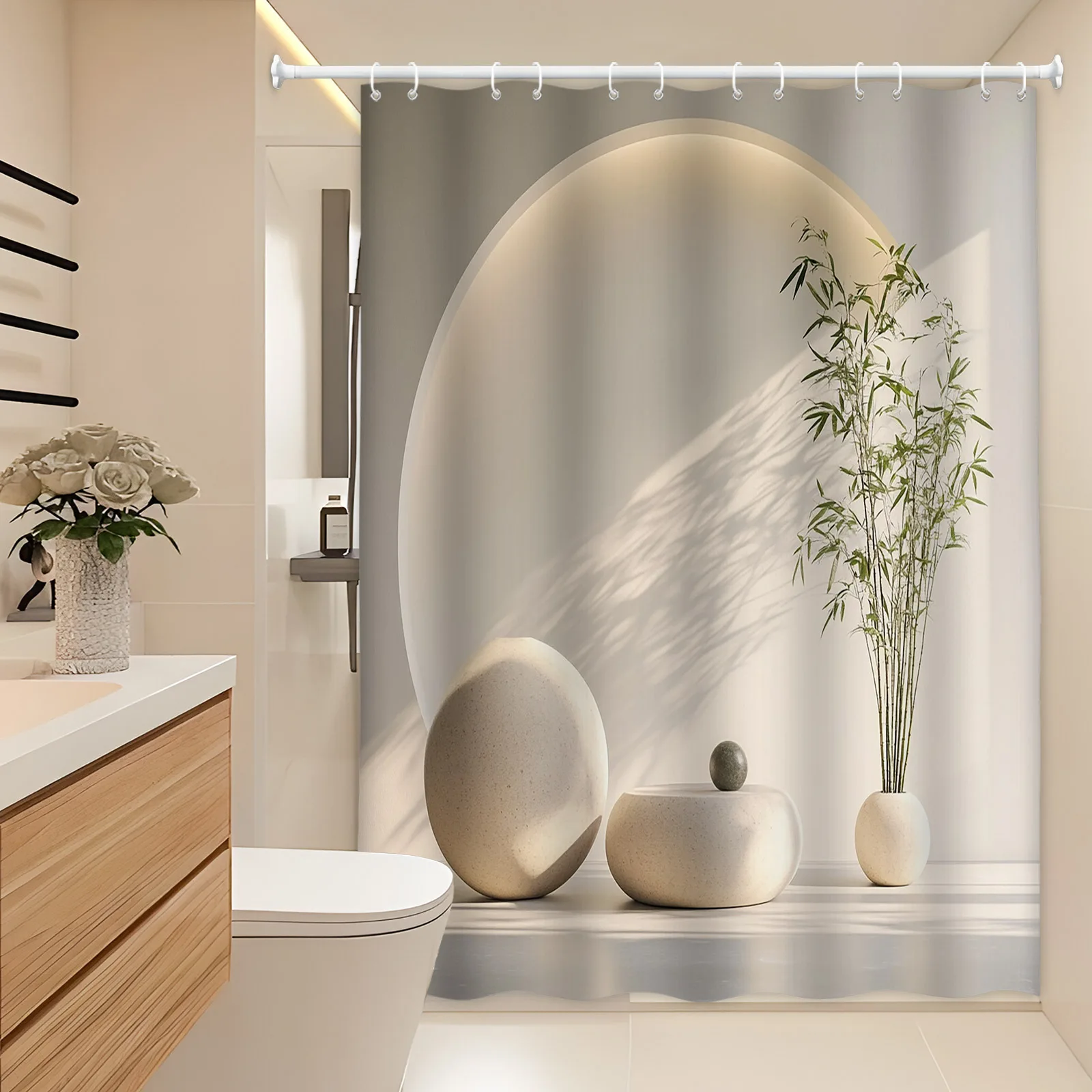 ม่านอาบน้ำไม้ไผ่สไตล์มินิมอล ตกแต่งห้องน้ำทันสมัย ดีไซน์แรงบันดาลใจจากเซน แสงธรรมชาติ สร้างเงา กันน้ำ