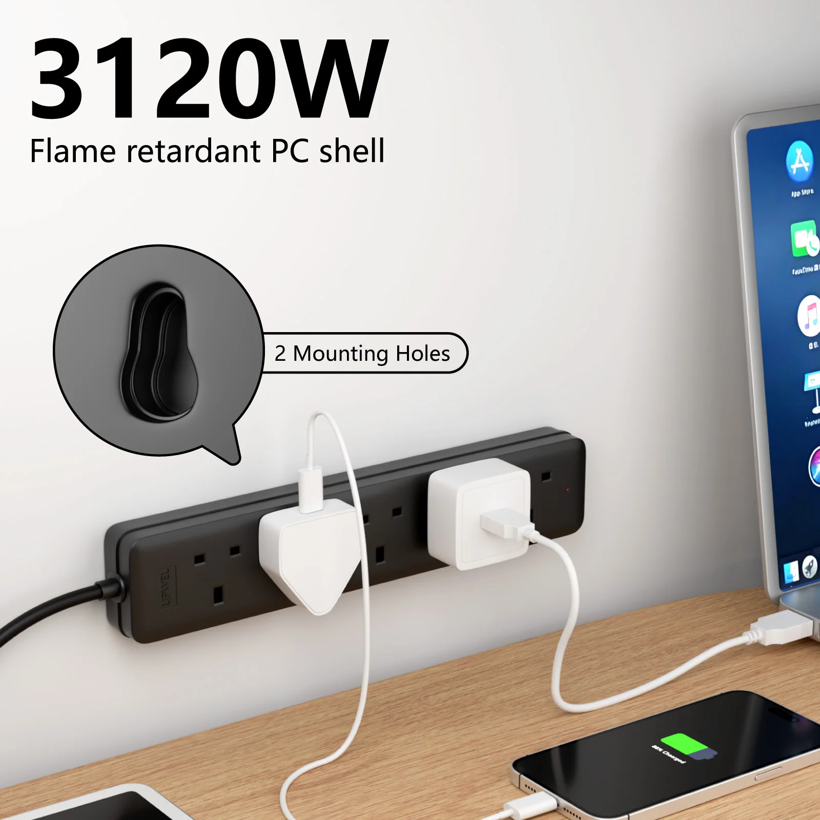 1 ชิ้น UK Compact 5 Socket Power Strip พร้อมการออกแบบติดผนัง, ความต้านทานต่ออุณหภูมิสูงเปลวไฟและไฟแสดงสถานะ