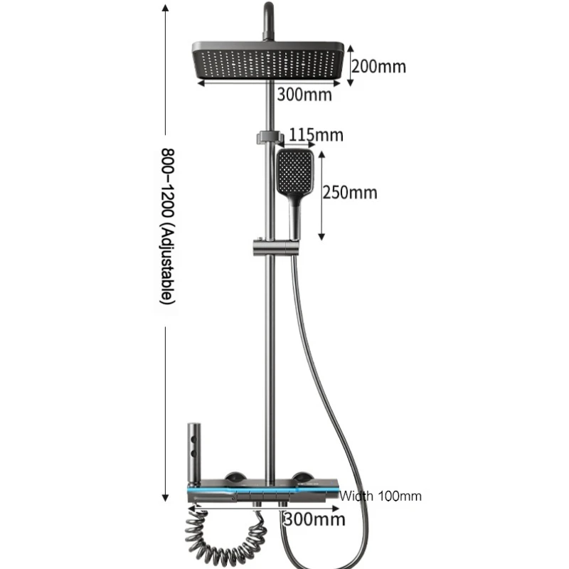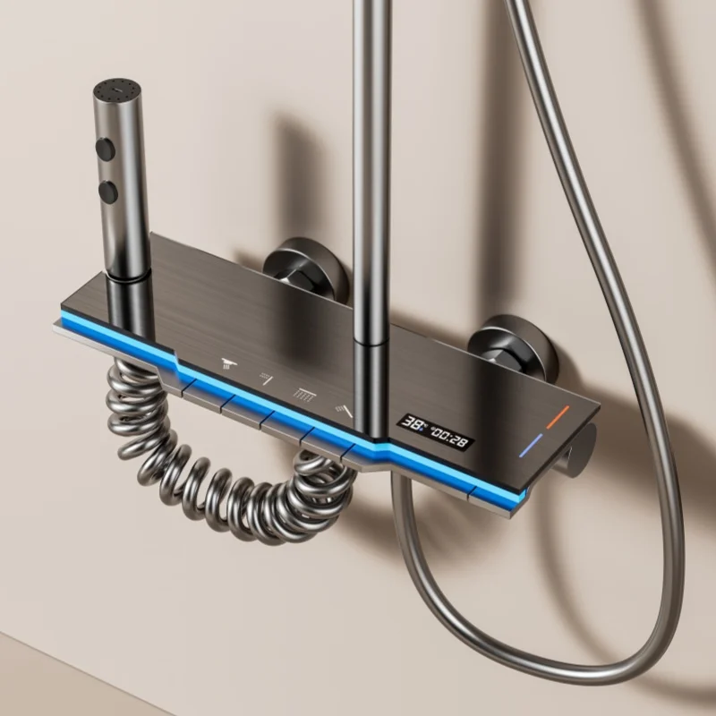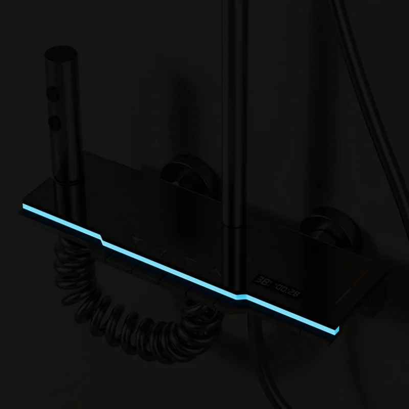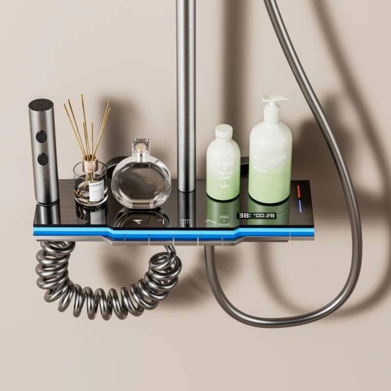 ชุดระบบฝักบัวอาบน้ำทันสมัย พร้อมแผงกระจก อ่างอาบน้ำ ฝักบัวแบบเรนชาวเวอร์ จอแสดงผล LED ฝักบัวแบบฝนตก ก๊อกน้ำร้อนน้ำเย็น พร้อมไฟ