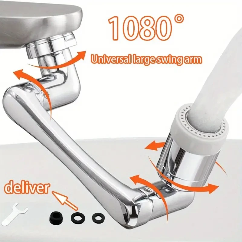 โลหะอเนกประสงค์ 1080 ° หัวฉีดน้ำแบบหมุนได้สำหรับก๊อกน้ำในครัว 2 หัว พร้อมหัวพ่นแบบฟองอากาศ จาก 3 รีวิว
