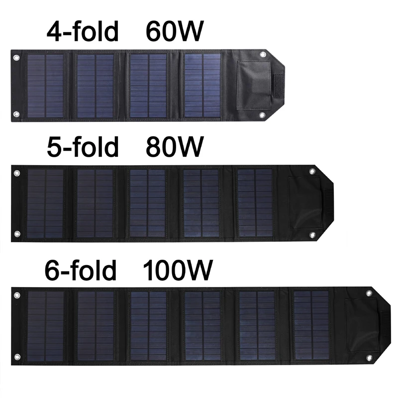 100W 80W แผงพลังงานแสงอาทิตย์แบบพับได้ 6 พับ,10Wh USB 5V DC Solar Charger, แบบพกพา Power Bank สําหรับตั้งแคมป์เดินป่ากลางแจ้ง