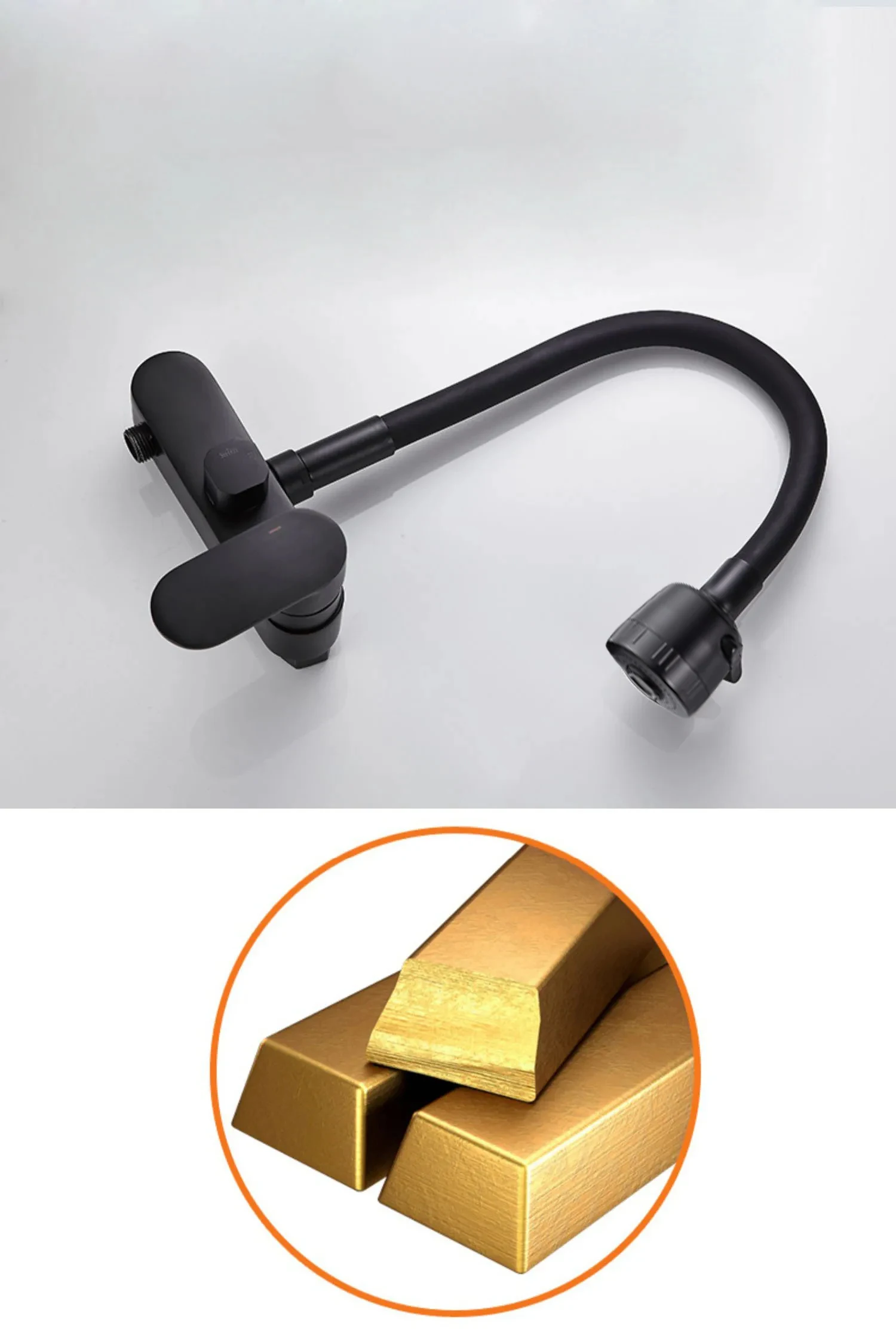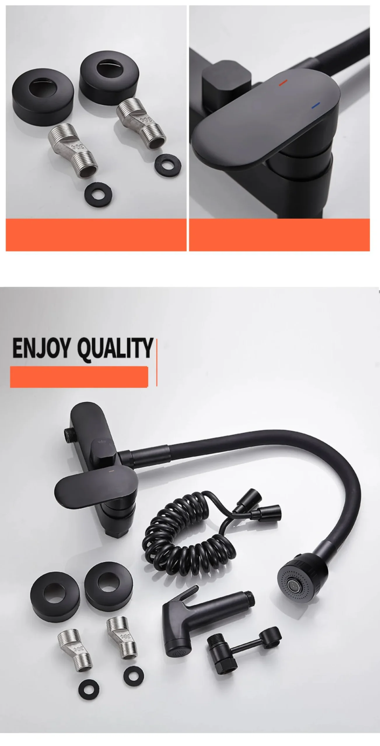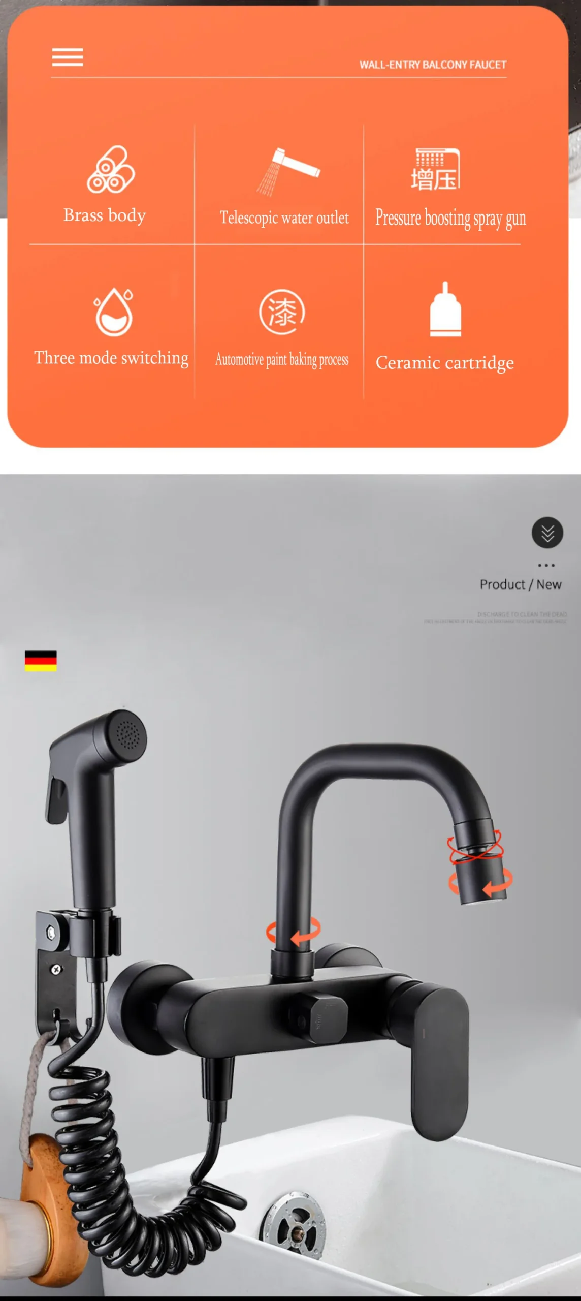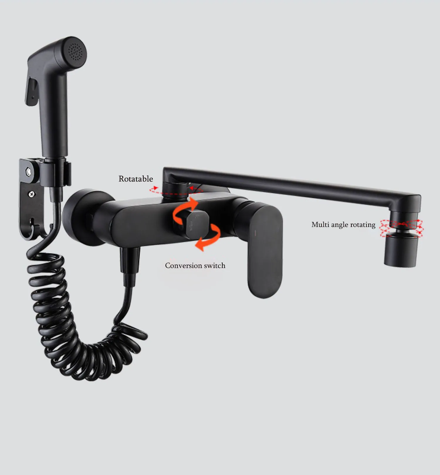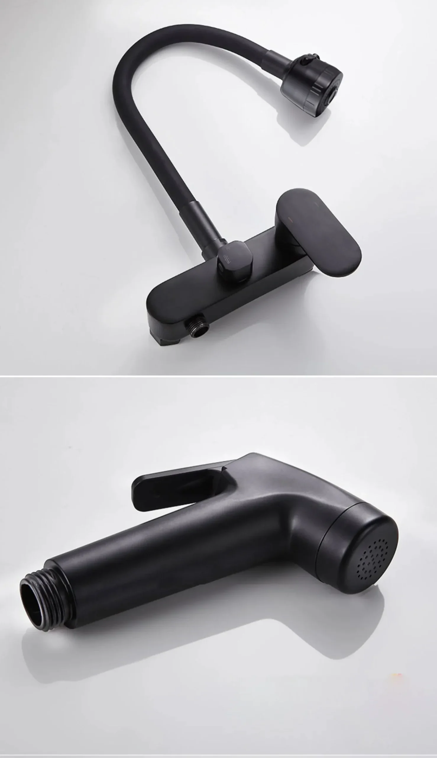 BAKALA Matte สีดําก๊อกน้ําห้องครัวติดผนังทองเหลือง 360 หมุน Spout เดี่ยวร้อนเย็นน้ําผสม Sprayer หัว