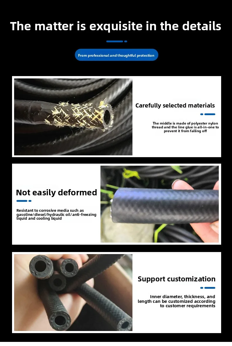 สายยางไนไตรล์เรียบสีดำ ขนาด 1 เมตร ID 3~32 มม. NBR สำหรับเครื่องยนต์ยานยนต์และรถจักรยานยนต์ สายยางยืดหยุ่นสำหรับแรงดันสูง เหมาะสำหรับสายยางน้ำมันเชื้อเพลิง