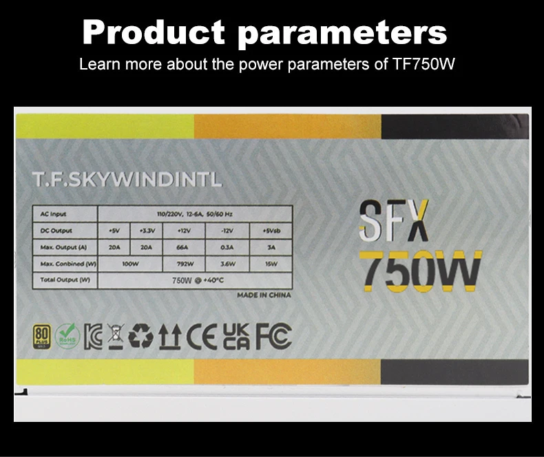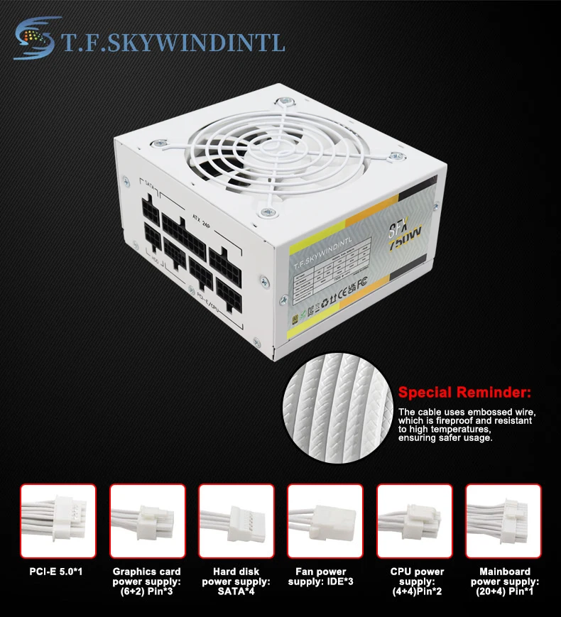 พาวเวอร์ซัพพลาย SFX 750W สีขาว แบบ Full-Modular มาตรฐาน ATX3.0 รองรับ PCIE5.0 สำหรับเคสคอมพิวเตอร์ขนาดเล็ก Mini ITX รองรับไฟฟ้า 110v/220V