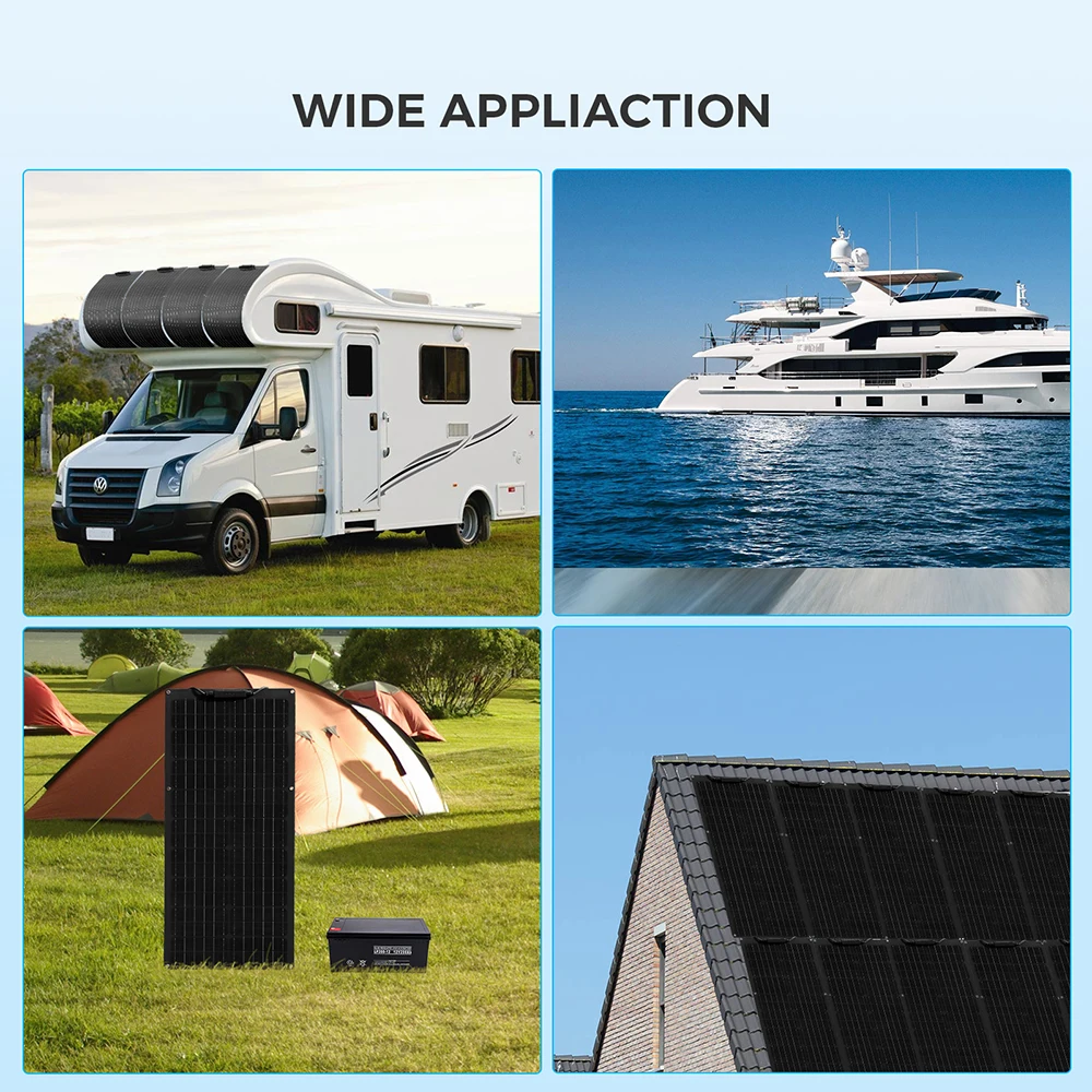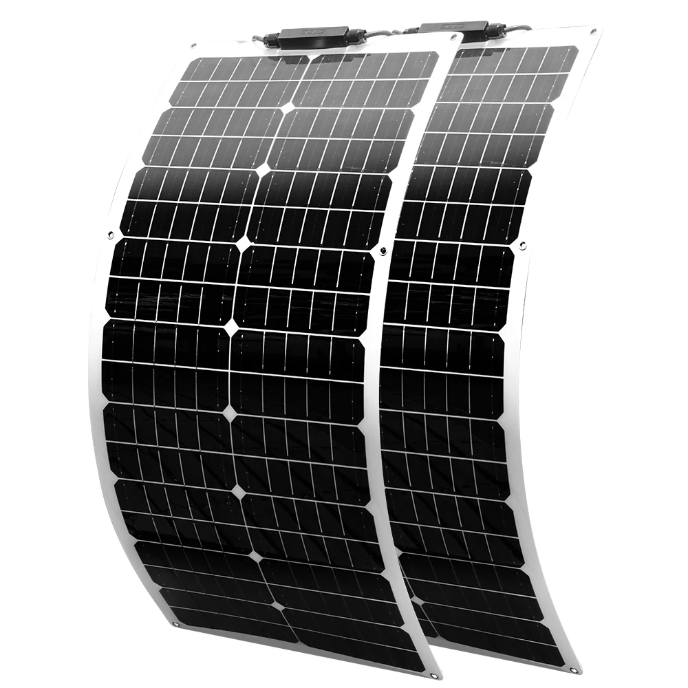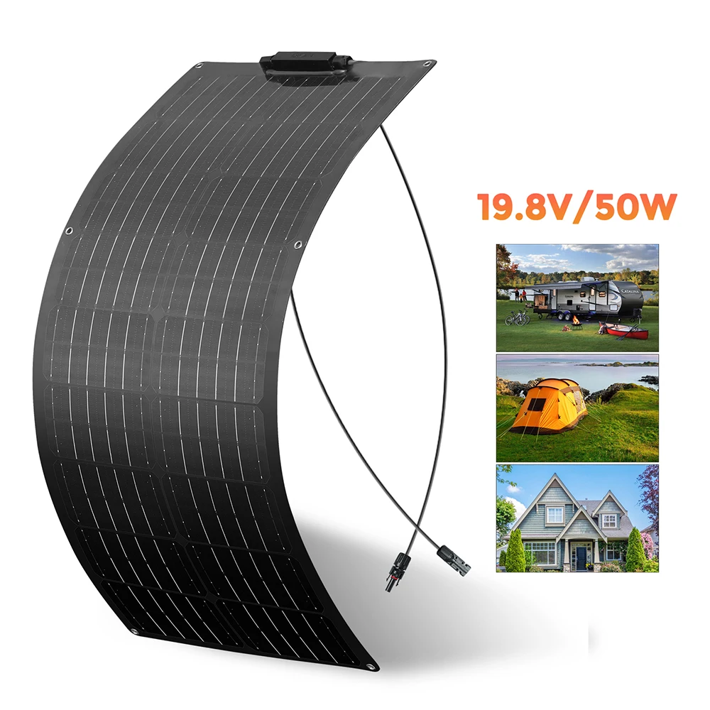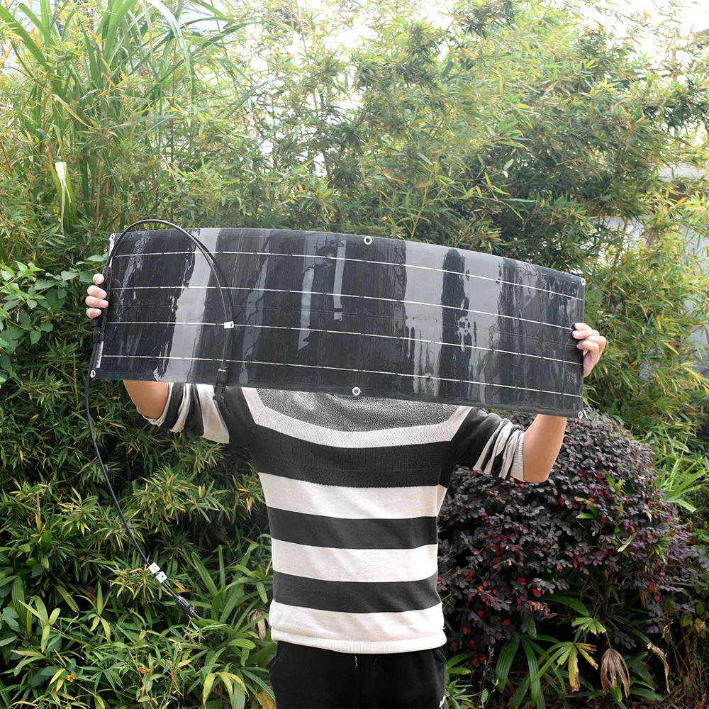 แผงเซลล์แสงอาทิตย์แบบโมโนคริสตัลไลน์12V 100W ยืดหยุ่นได้แผงโซล่า50วัตต์พลังงานแสงอาทิตย์ที่มีน้ำหนักเบา placa สำหรับตั้งแคมป์เรือบ้านหลังคา