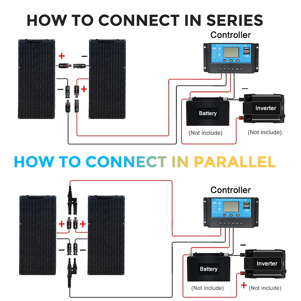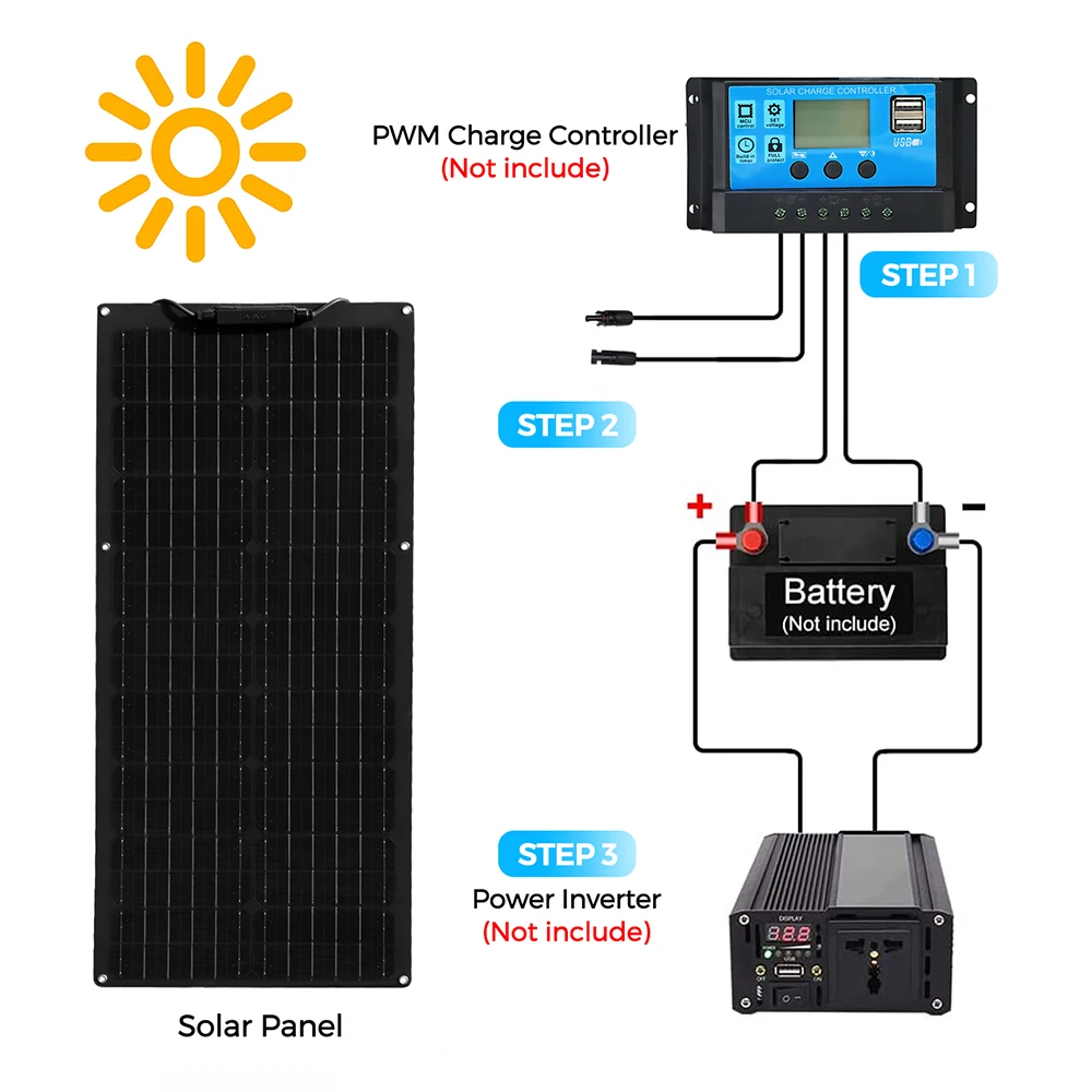 เครื่องควบคุม10A-100A เซลล์แสงอาทิตย์12V แผงโซล่า1000W, แผงเซลล์แสงอาทิตย์สำหรับรถยนต์ RV คาราวานบ้านตั้งแคมป์กลางแจ้งแบตเตอรี่
