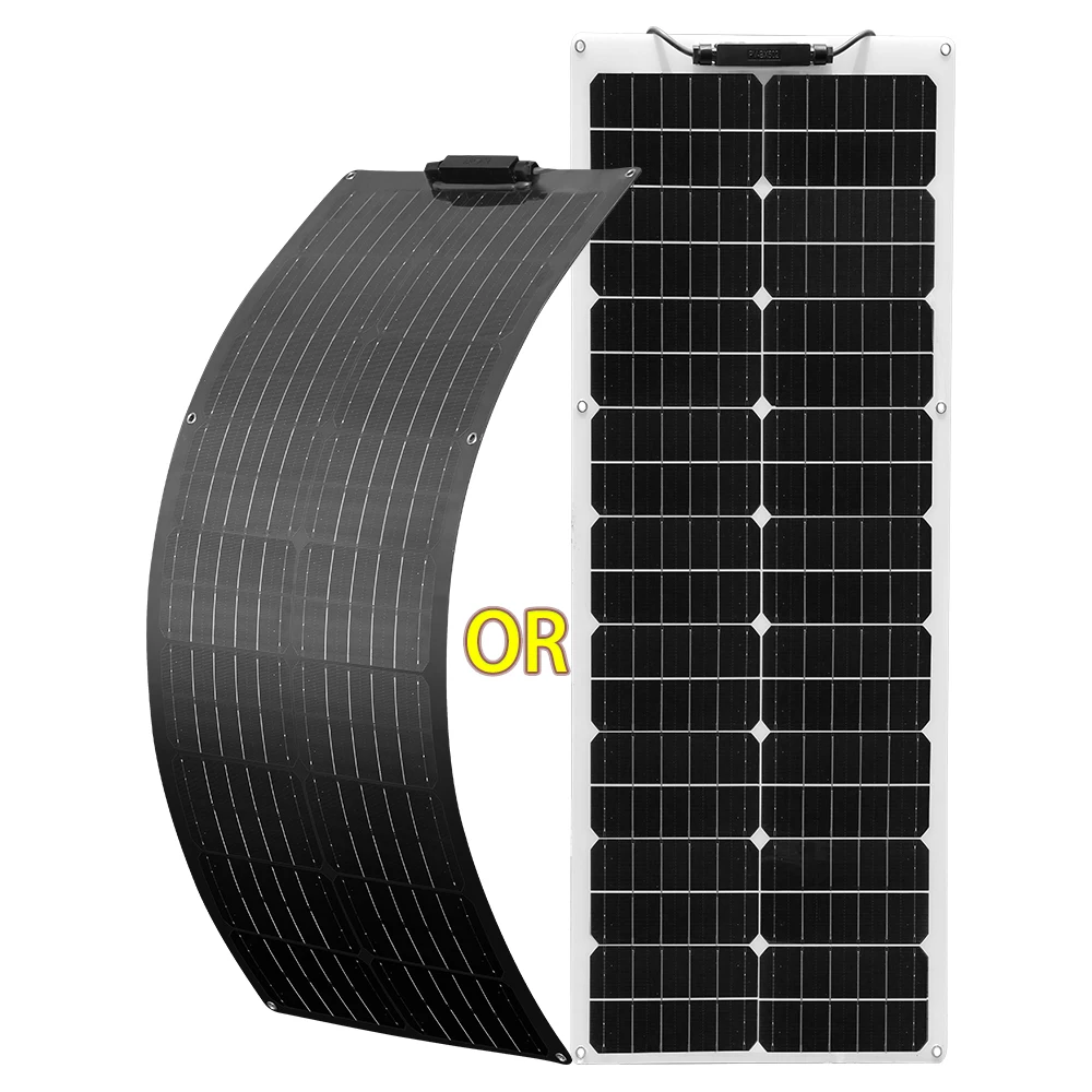แผงเซลล์แสงอาทิตย์แบบโมโนคริสตัลไลน์12V 100 W 50W แผงโซล่ายืดหยุ่นได้100วัตต์พลังงานแสงอาทิตย์น้ำหนักเบาสำหรับตั้งแคมป์เรือบ้าน RV Solar Panel