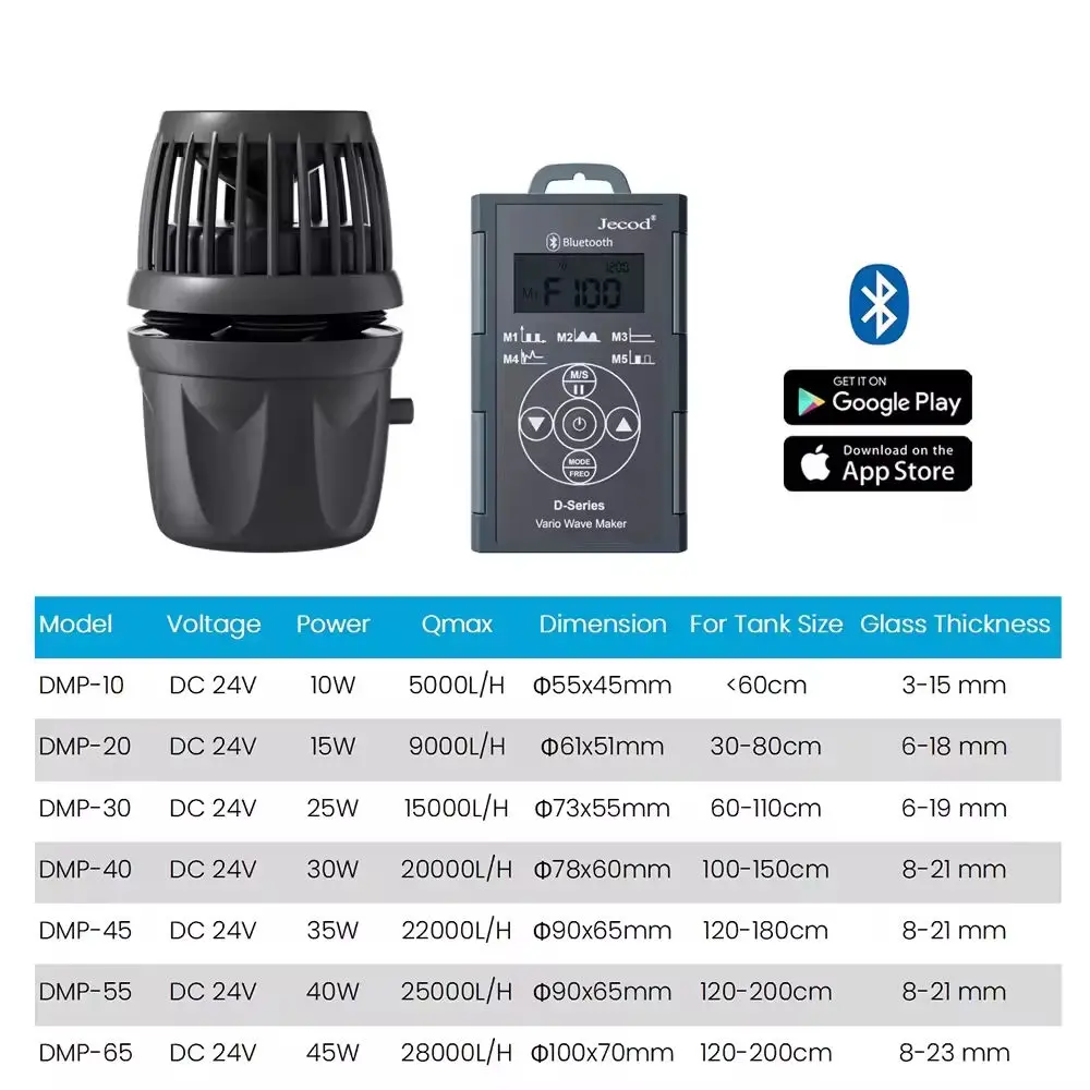 ปั๊มสร้างคลื่น Jecod Jebao DMP พร้อมบลูทูธ สำหรับตู้ปลา น้ำจืด น้ำเค็ม รุ่น DMP-10/20/30/40 อุปกรณ์สร้างคลื่นในตู้ปลา