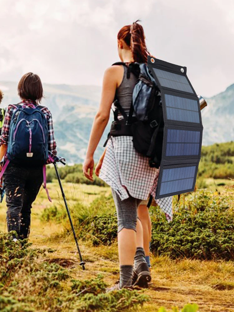 แผงโซลาร์เซลล์แบบพกพาพร้อม USB สำหรับการเดินป่า ตั้งแคมป์ ชาร์จแบตเตอรี่โทรศัพท์มือถือ แบตสำรอง แผงชาร์จ