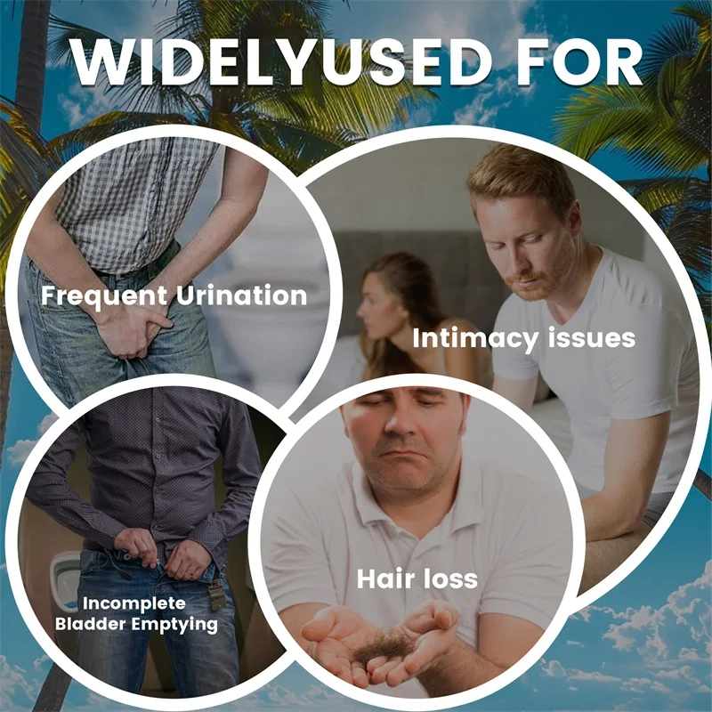 สนับสนุนต่อมลูกหมากสำหรับผู้ชาย – ลดการใช้ห้องน้ำ, ปรับปรุงการนอนหลับ, ควบคุมการทำงานของกระเพาะปัสสาวะ, บรรเทาการหลุดร่วงของเส้นผม, ส่งเสริมการเจริญเติบโตของเส้นผม