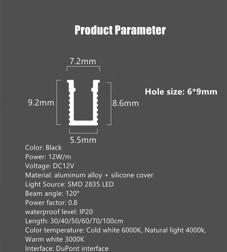 ไฟ LED ใต้ไฟตู้แบบบางพิเศษขนาด6×9มม. DC12V แถบอลูมิเนียมปลอกซิลิโคนปิดภาคเรียนในตัว