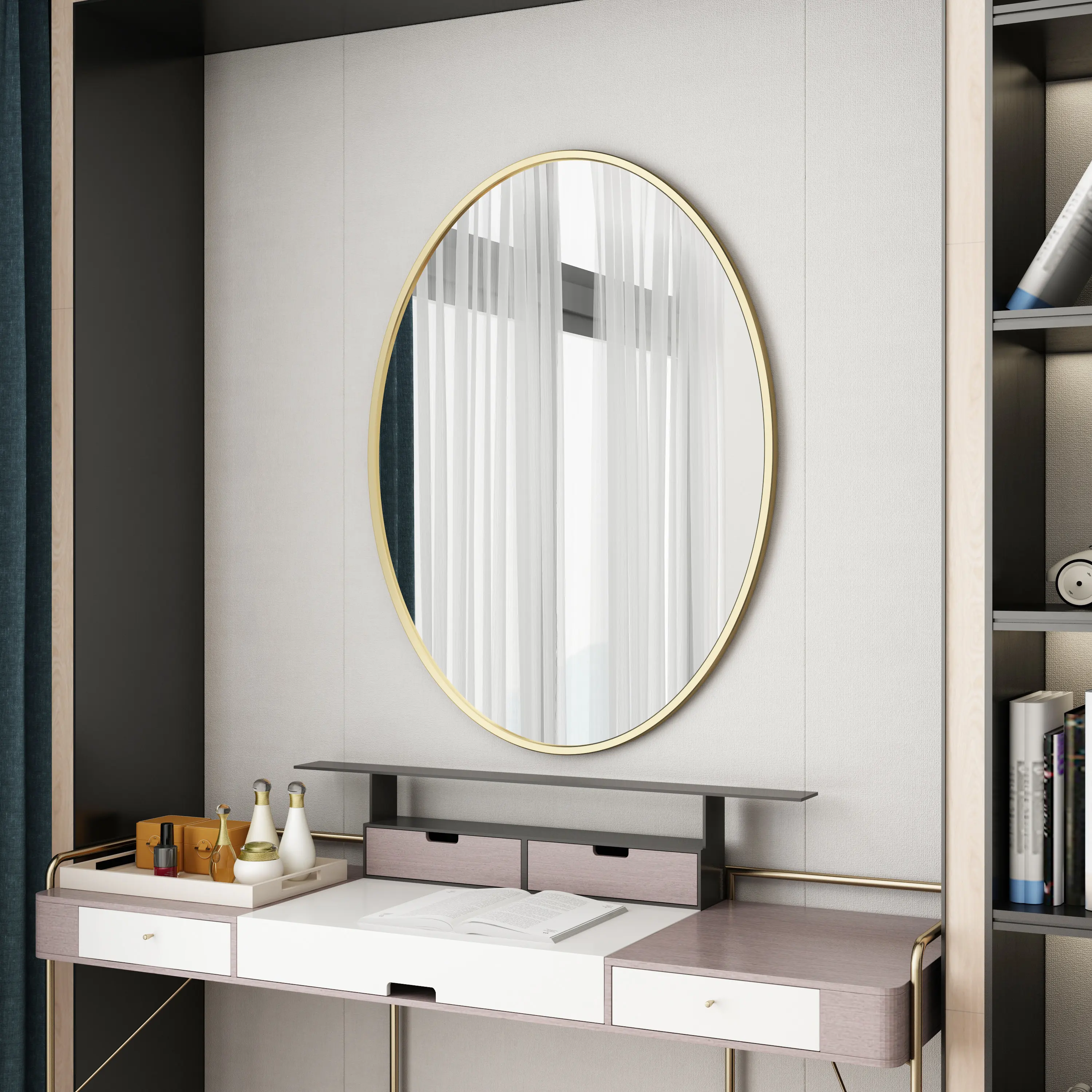 แปรงแต่งหน้าตกแต่งบ้าน กระจกเต็มตัว ของตกแต่งห้องน้ำ กระจกติดผนังสไตล์สวยงาม กระจกขนาดเล็ก ของตกแต่งบ้าน ชั้นวางของ ไฟ