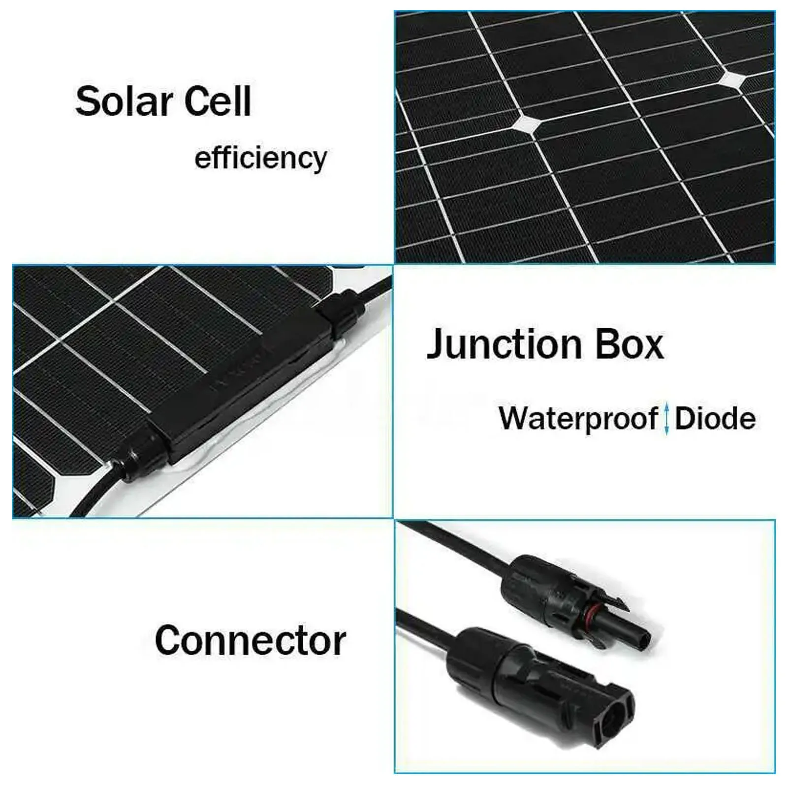 1.ประสิทธิภาพสูง: แผงโซลาร์เซลล์ซิลิคอนโมโนคริสตัลไลน์ 20W ตัวควบคุมรองรับ 300W เพิ่มการใช้พลังงานแสงแดดให้สูงสุด ให้การสนับสนุนพลังงานที่เชื่อถือได้สําหรับ RV และกิจกรรมตั้งแคมป์