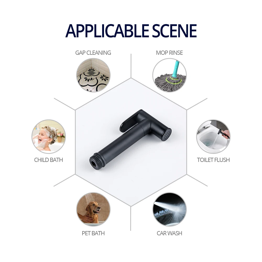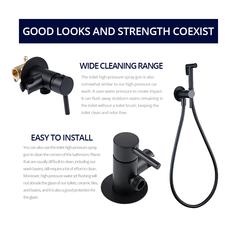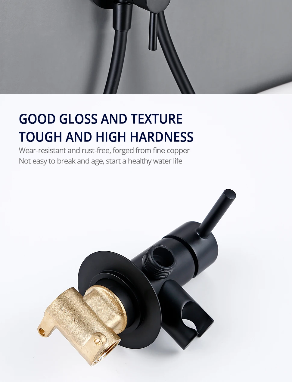 ก๊อกน้ำโถสุขภัณฑ์สีดำด้านหัวก๊อกห้องน้ำมือถือ1.2เมตรหัวก๊อกร้อนและน้ำเย็นหัวก๊อกยางทำความสะอาดตัวเอง