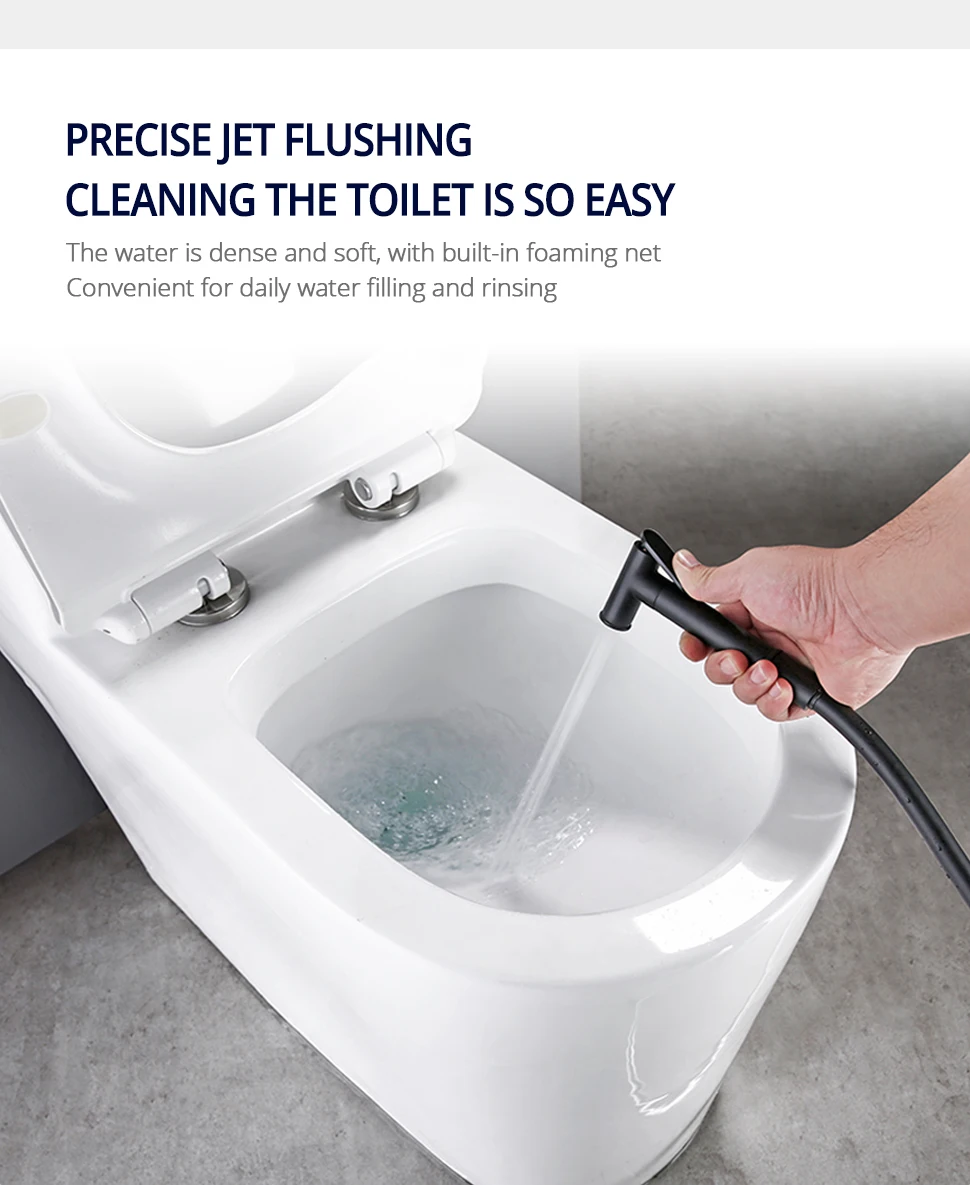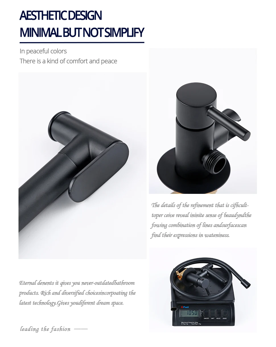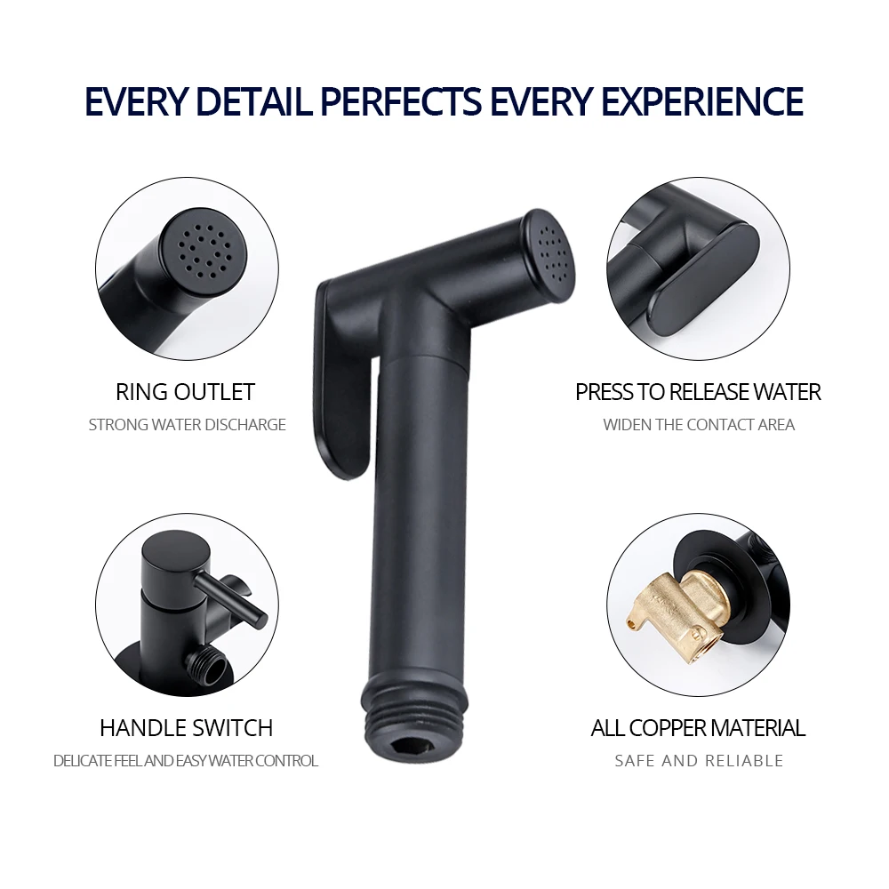 ก๊อกน้ำโถสุขภัณฑ์สีดำด้านหัวก๊อกห้องน้ำมือถือ1.2เมตรหัวก๊อกร้อนและน้ำเย็นหัวก๊อกยางทำความสะอาดตัวเอง