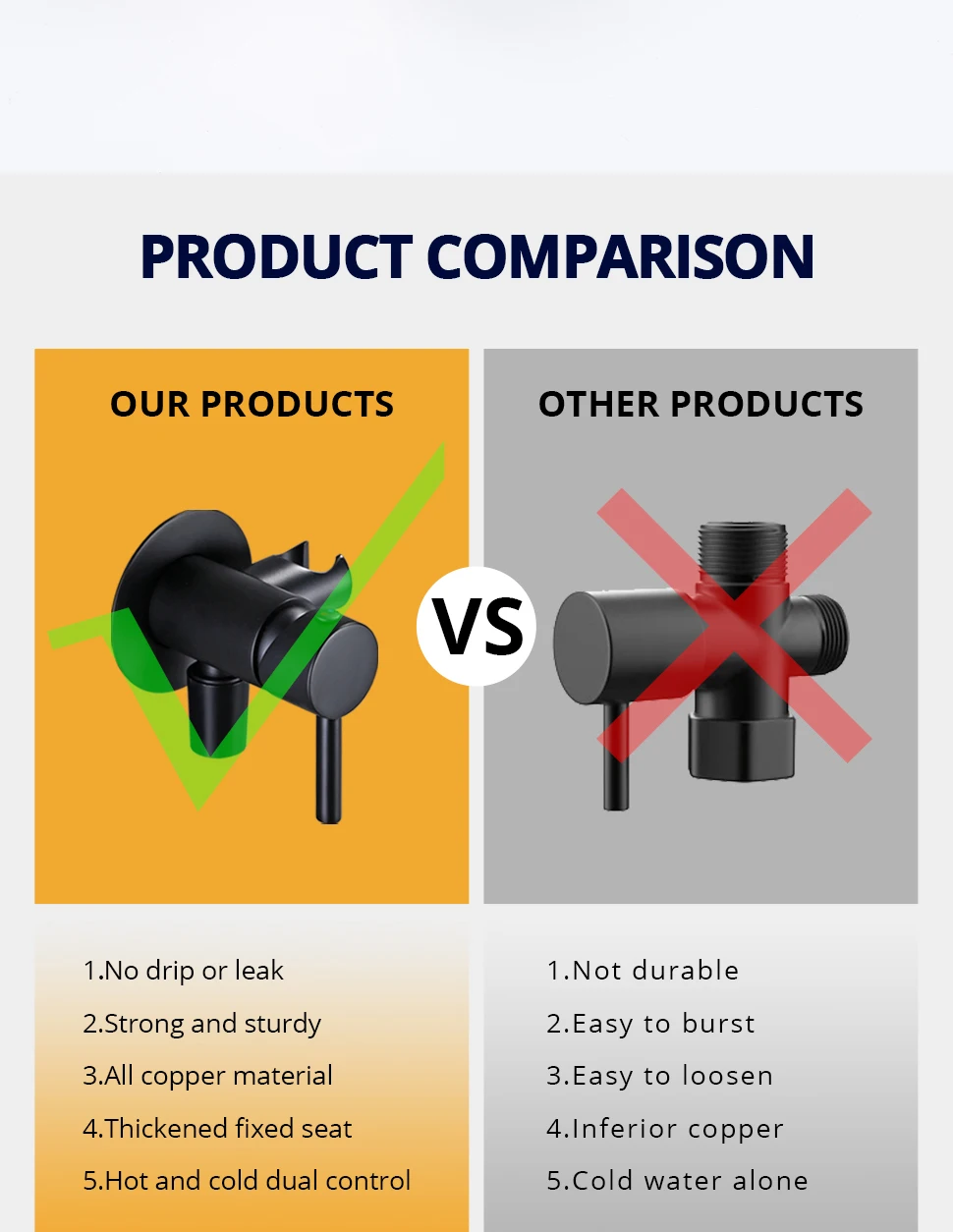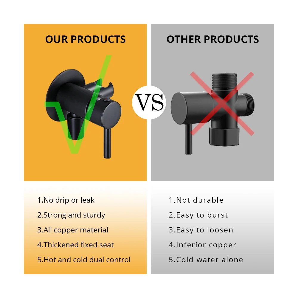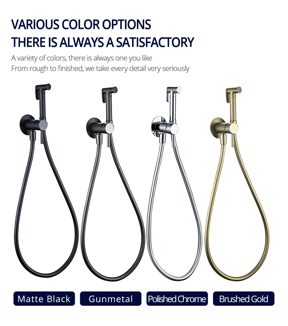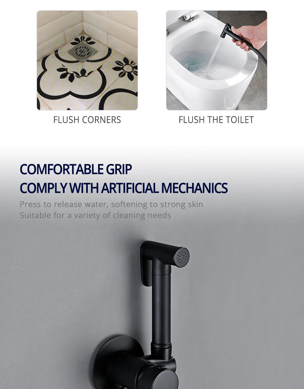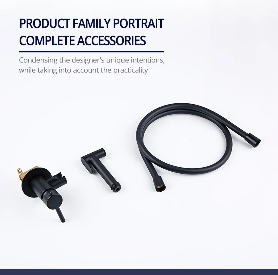 ก๊อกน้ำโถสุขภัณฑ์สีดำด้านหัวก๊อกห้องน้ำมือถือ1.2เมตรหัวก๊อกร้อนและน้ำเย็นหัวก๊อกยางทำความสะอาดตัวเอง จาก 1 รีวิว